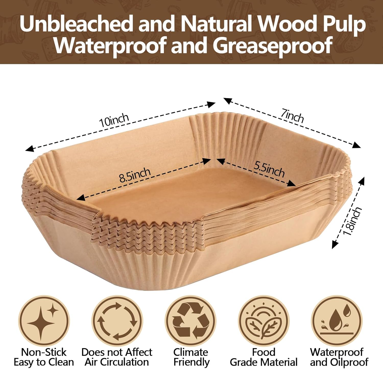 - 【Healthy materials】The Ninja Air Fryer disposable paper liners are made from untreated wood with a silicone coating, unbleached, no fluorescent additives, BPA-free, PFA-free. Waterproof, oilproof, non-stick, heatproof, 100% healthy