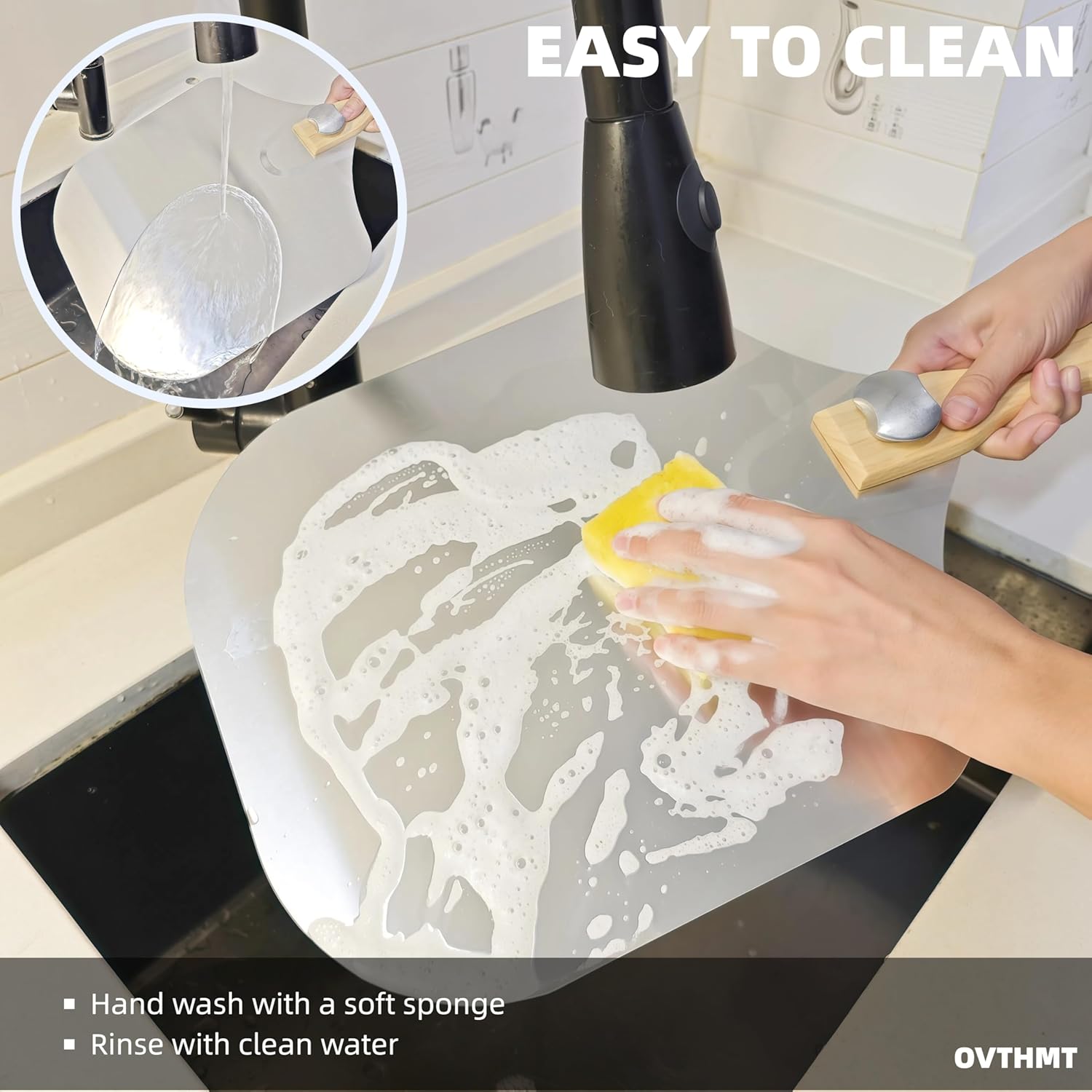 - EASY TO CLEAN: Our 12" pizza peel is easy to clean after use. Just hand wash with a soft sponge and rinse with clean water. The aluminum pizza peel is rust-resistant, and it is an ideal pizza spatula paddle for oven.