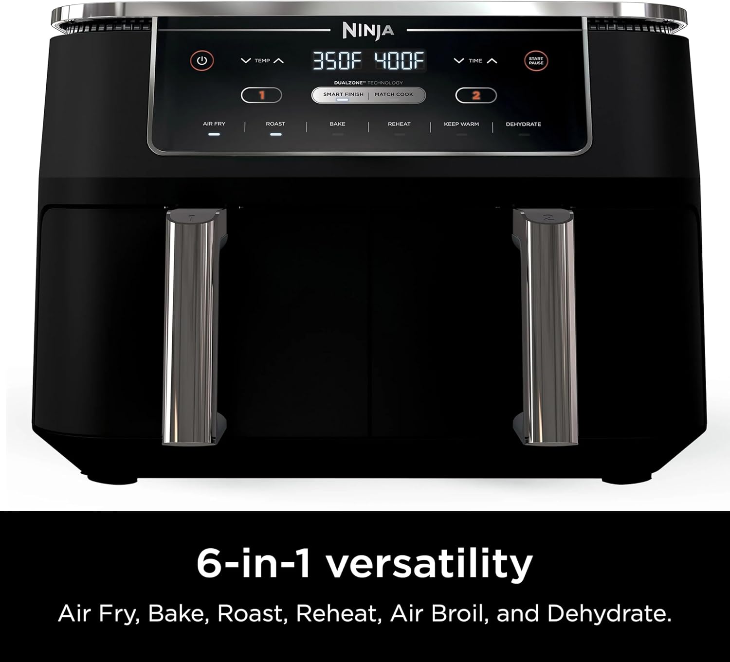 - DUALZONE TECHNOLOGY: The Smart Finish feature, unlocks cooking 2 foods 2 ways that finish at the same time, or the Match Cook feature, easily copies settings across zones for full 10-qt. capacity.