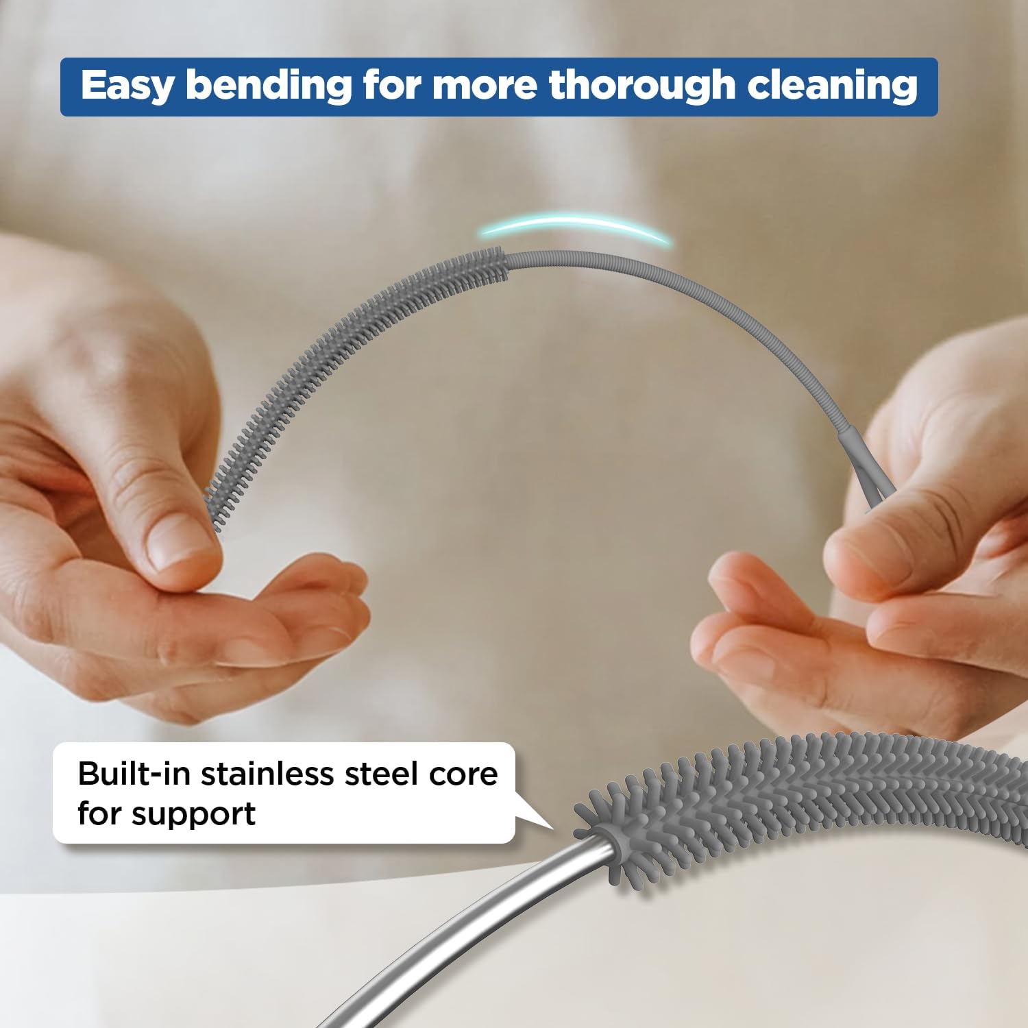 - >Non-Slip Bendable Handle: The handle surface of this straw brush is threaded with a non-slip design for a comfortable grip, and the built-in steel core provides support for the straw cleaner brush so you don't have to worry about it falling off during the cleaning process, and it can be easily bent for glass straws, metal straws, smoothie straws, straw sippy cup.