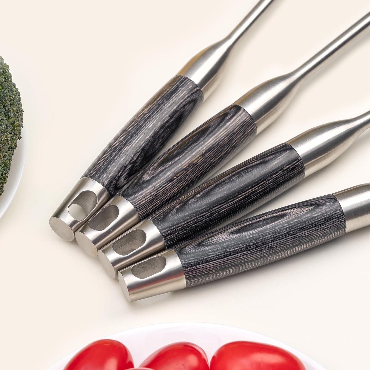 - Unique design cooking utensils : Wooden handle combination of 304 stainless steel and food-grade silicone,special and durable