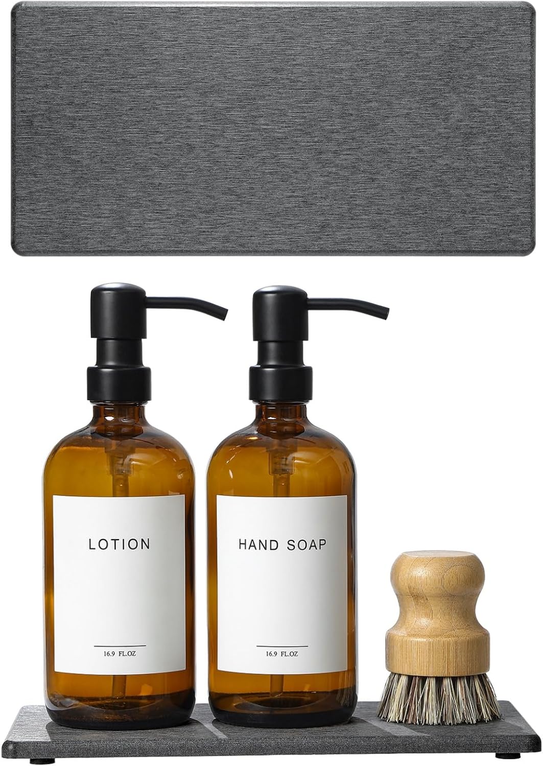 2PCS 10"x 5" Large Bathroom Sink Vanity Trays, Water Absorbing Diatomite Stone Quick Drying Mat for Kitchen Counter, Dish Rack Dispensers Sponge Holder Caddy Organizer, Dark Gray,