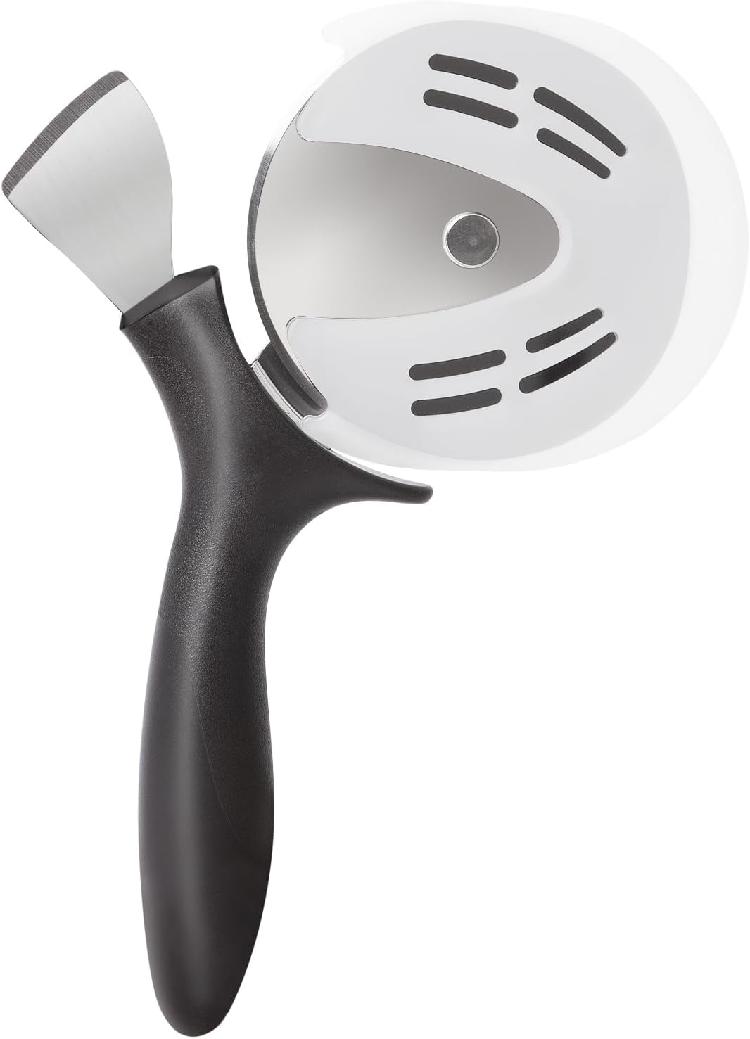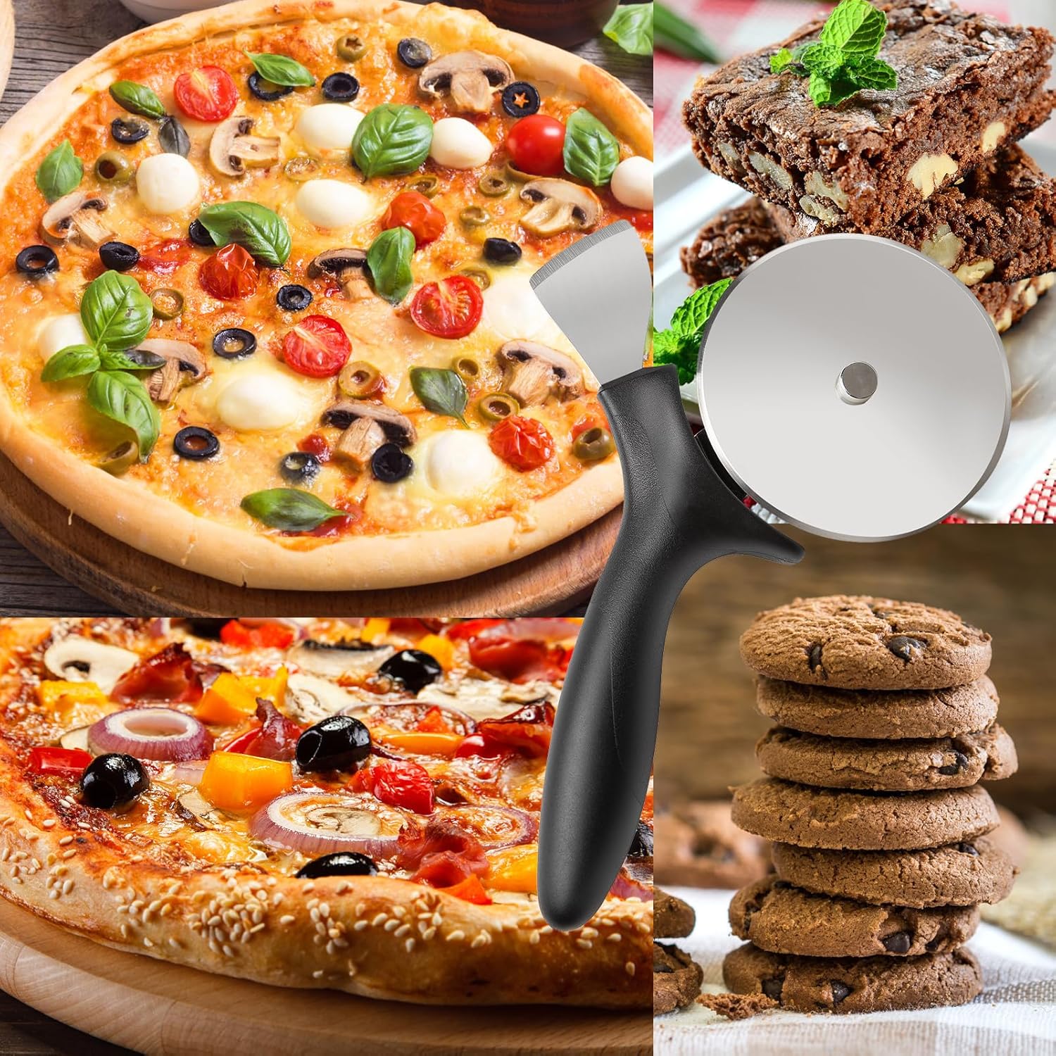 - 【2 Great Tools in 1】The sharp pizza wheel and crust knife can cut through any crust and toppings cleanly and neatly with just one tool. This pizza cutter can press the crust and toppings together to keep the toppings on the pizza, and you will get a perfect pizza slice.