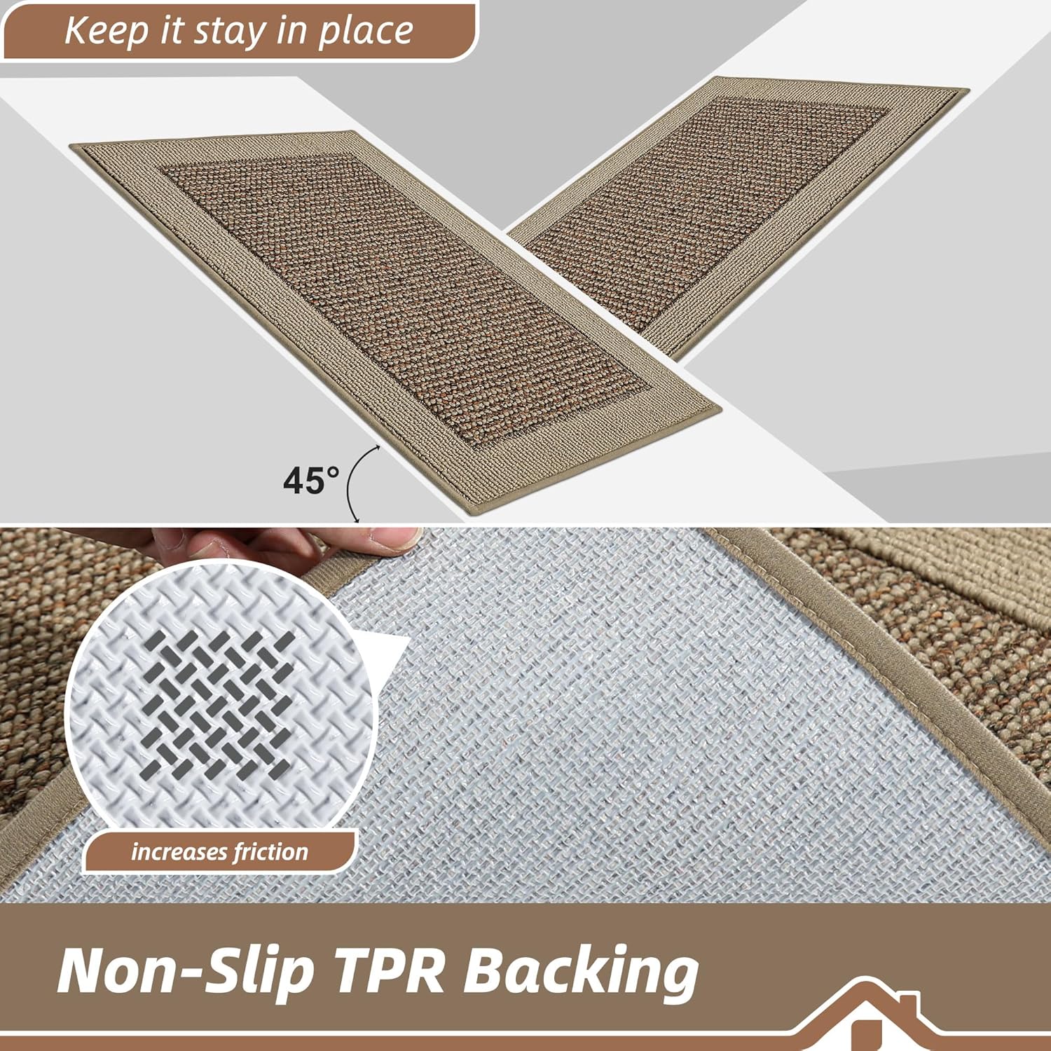 - Non-Slip Backing: The rugs for kitchen are designed with TPR anti-skid backing that ensures the kitchen mats stay firmly on your floor, minimizing the risk of slips, trips, and falls. NOTE: Please make sure the floor is clean and dry before placing