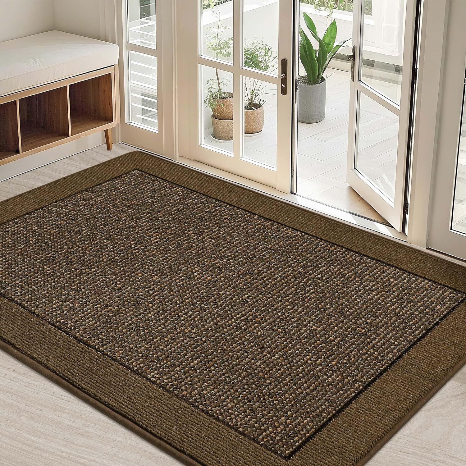 BEQHAUSE Indoor Door Mat 32" x 48", Dirt Trapper Door Mats Non-Slip Entryway Rugs Washable, Resist Dirt Absorbent Welcome Mat, Low Profile Floor Mats for Front Back Door and Entryway, Brown