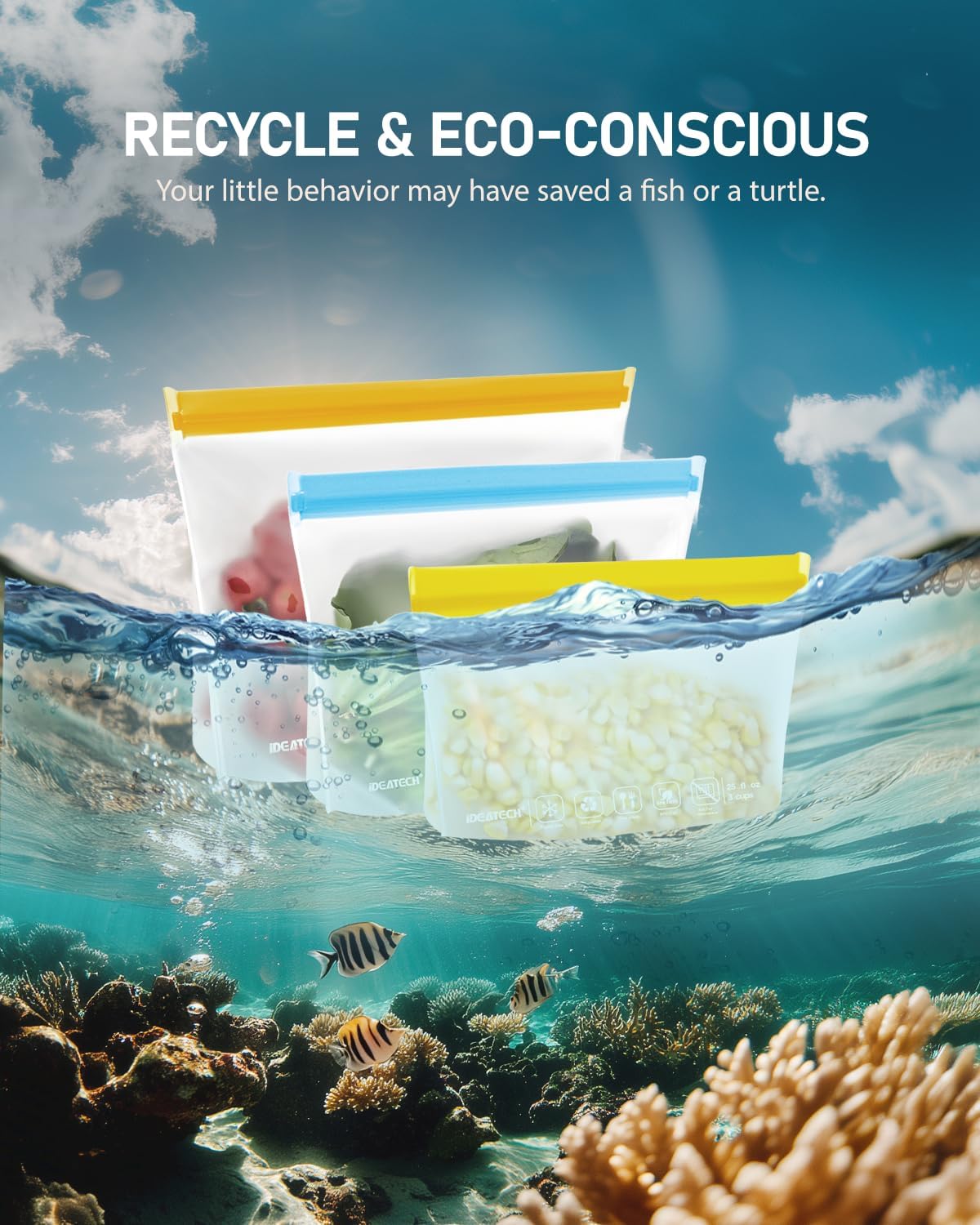 - Food Grade Reusable Bags: Made of food grade PEVA , reusable storage bags are PVC-free, lead-free, chloride-free and BPA FRE. They are not harmful to the environment. Also,you donβt need worry about your heath with these food bags