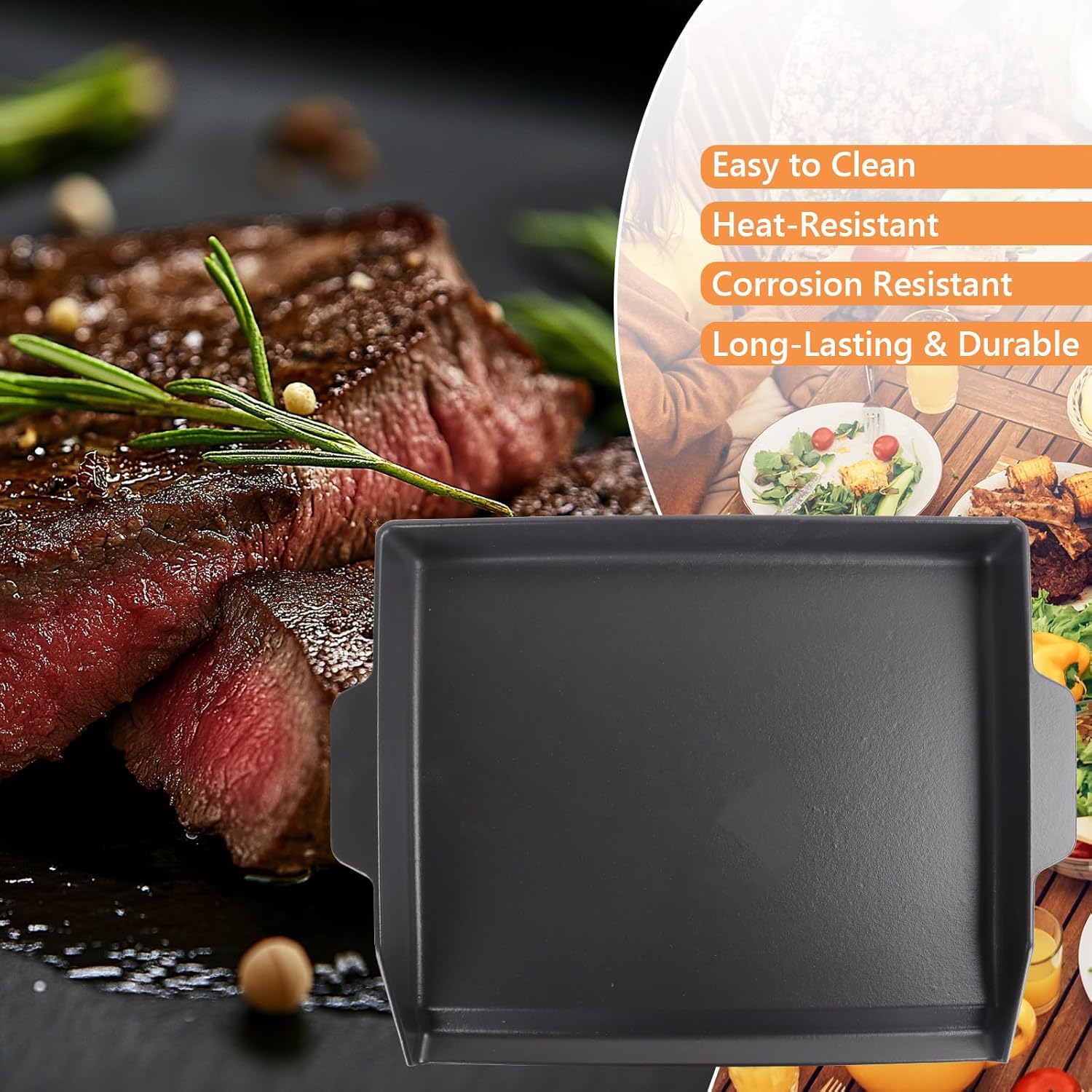- Premium Quality: This cooking griddle crafted from durable cast iron, special sturdy construction and evenly heated. Before using the flat top grill griddle, you can season it first. Convenient for your use. When used correctly this camping stove griddle heats food evenly and cooks delicious meals. Note: When seasoned with cooking oil before use, cast iron creates a natural non-stick surface that makes cleaning a breeze and extends its life.