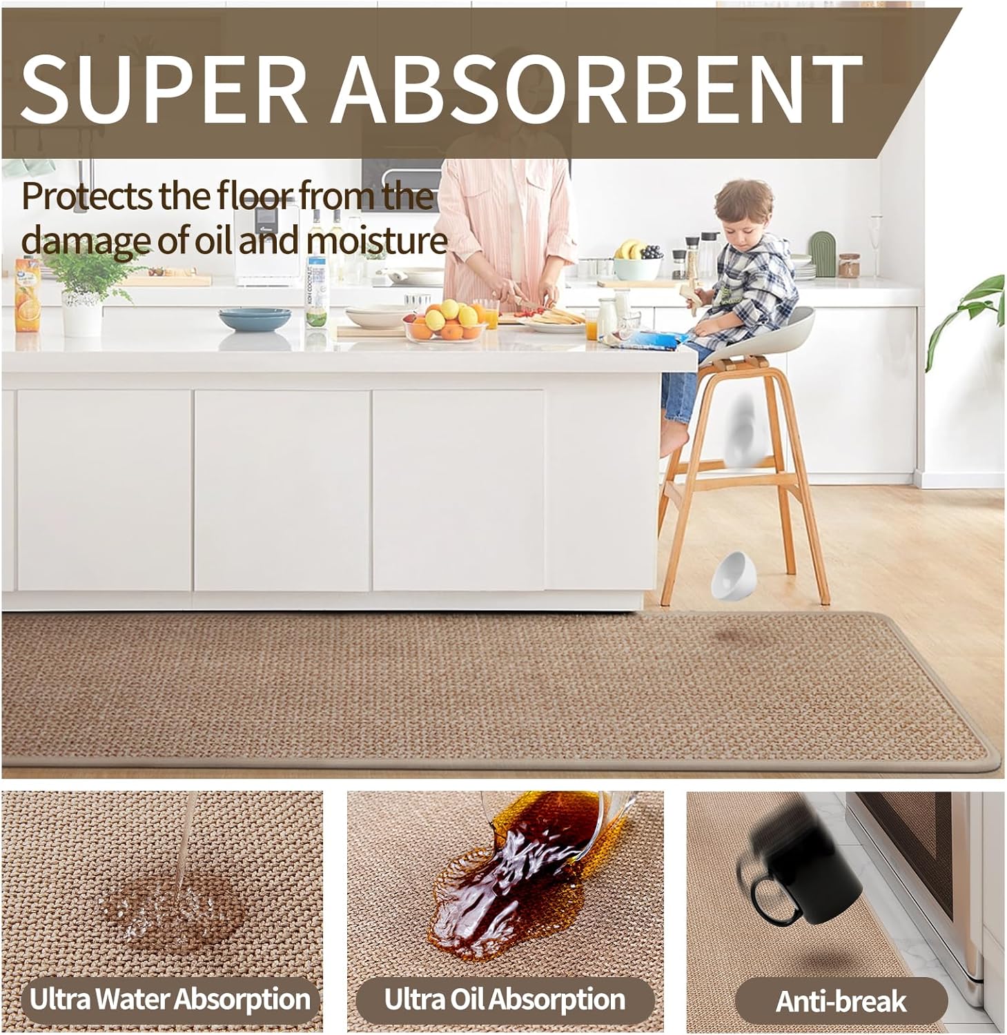 Kitchen Rugs and Mats Non Slip Washable, Absorbent Runner Rugs for Kitchen, Front of Sink, Kitchen Mats for Floor,Easy to Clean and Maintain Kitchen Floor mat(Brown, 17"x30")