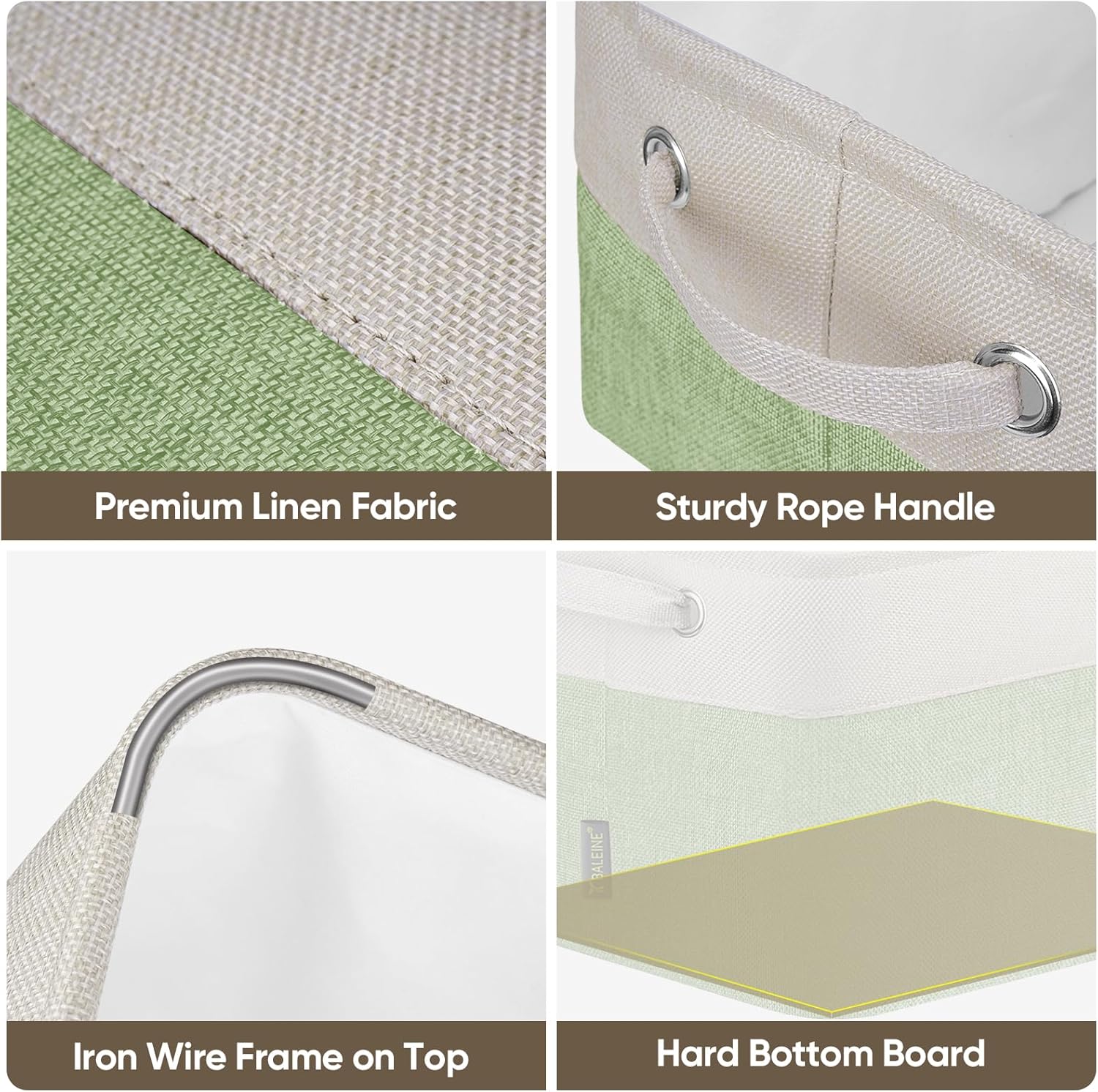 - [DURABLE MATERIAL] Made from premium quality linen fabric, storage baskets for shelves are built to last. The fabric is sturdy, resistant to wear and tear, and easy to clean. You can simply wipe them down with a damp cloth, and these organizer bins will look as good as new