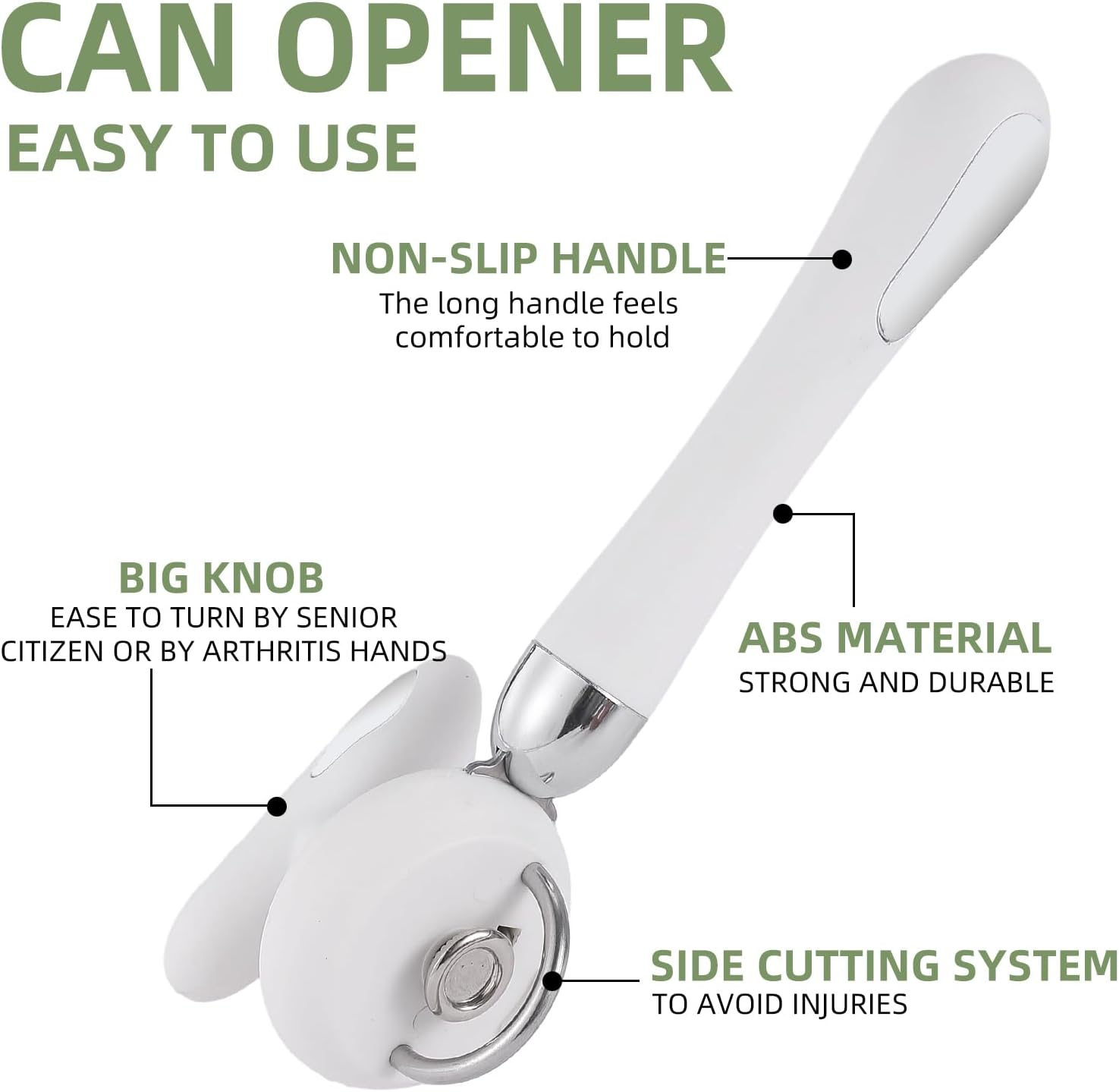 - Ergonomic handle: The handle is made of durable, non-slip ABS material that is easy to hold and adjust, helping you to easily open the can or bottle even if your hands are covered in oil, which will also reduce pressure on your wrist. Suitable for the elderly and arthritis
