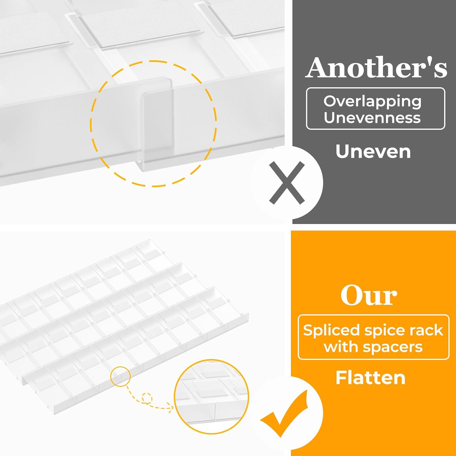 - Easy Assembly: No Tools Required! Our drawer spice rack is easy to install and use. Simply place the inserts in your drawer and adjust it to the desired size. Keep your countertop neat and tidy.