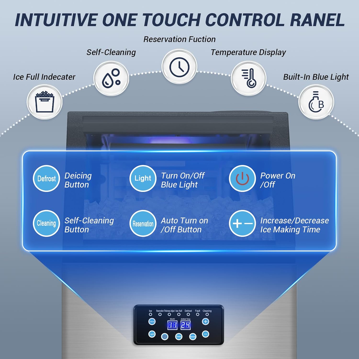 - Versatile Water Input Options: Customize your ice making process with our versatile water input options. Whether you prefer tap water or bottled water, our freestanding/undercounter ice maker accommodates both, offering flexibility to suit various settings and ensuring consistent ice quality.