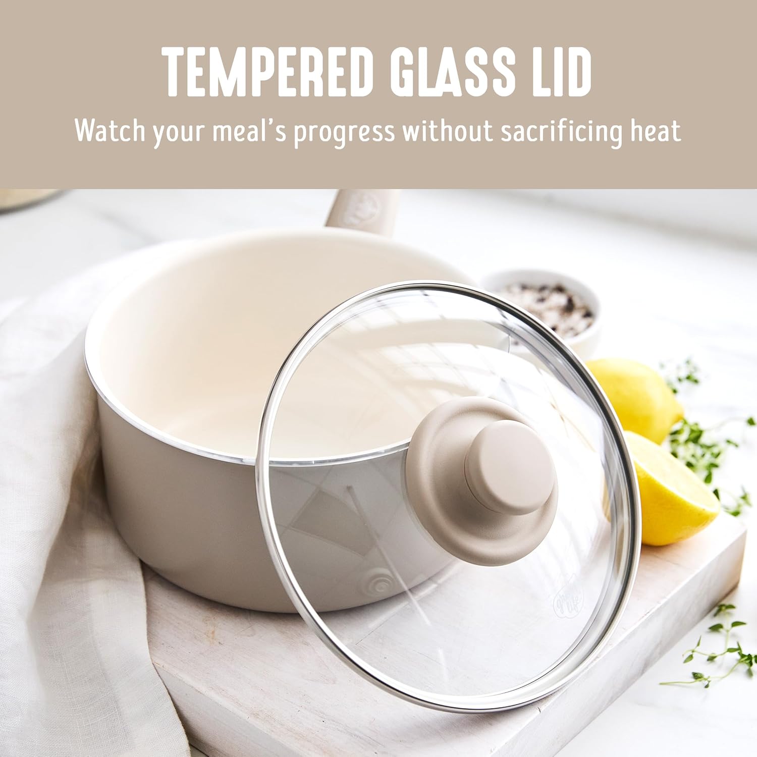 GreenLife 2 Quart Ceramic Nonstick Saucepan with Lid, PFAS-Free, Stay-Cool Handle, Multipurpose Kitchen Cooking Pot, Dishwasher & Oven Safe, Taupe