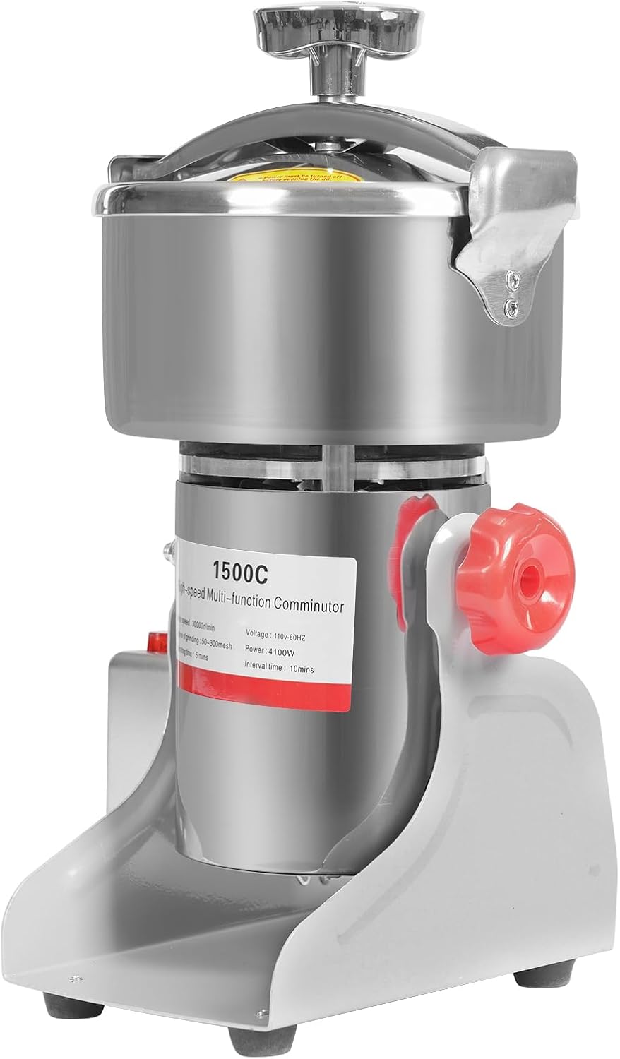 - ✅ MIXER GRINDER : Power:4100W ; Capacity:1500g; Motor Speed: 30000r/min,Continuous Running Time: 5min. Crushing fineness reaches from 50 to 300 mesh. This Electric Grain Grinder is mainly made of premium 304 stainless steel and iron that has been polished and paint sprayed, is c-orro-si-on-re-sis-tan-t, r-u-st-proof,not easily de-form-ed or cracked, and can be used safely for a long time.