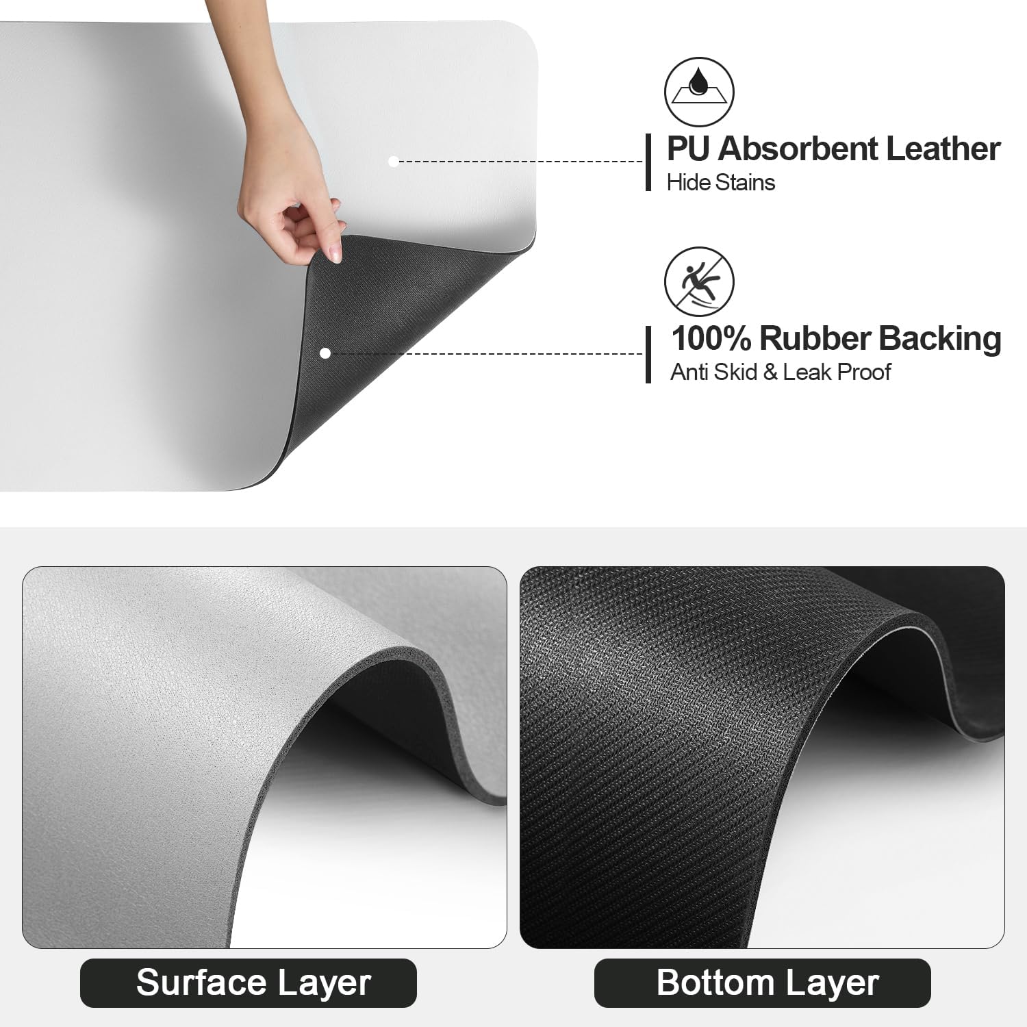 - 【Easy to Clean】 Unlike traditional cloth or other kitchen counter mats, the special PU material surface effectively hides stains from water, coffee, and milk, saying goodbye to messy and stained countertops.
