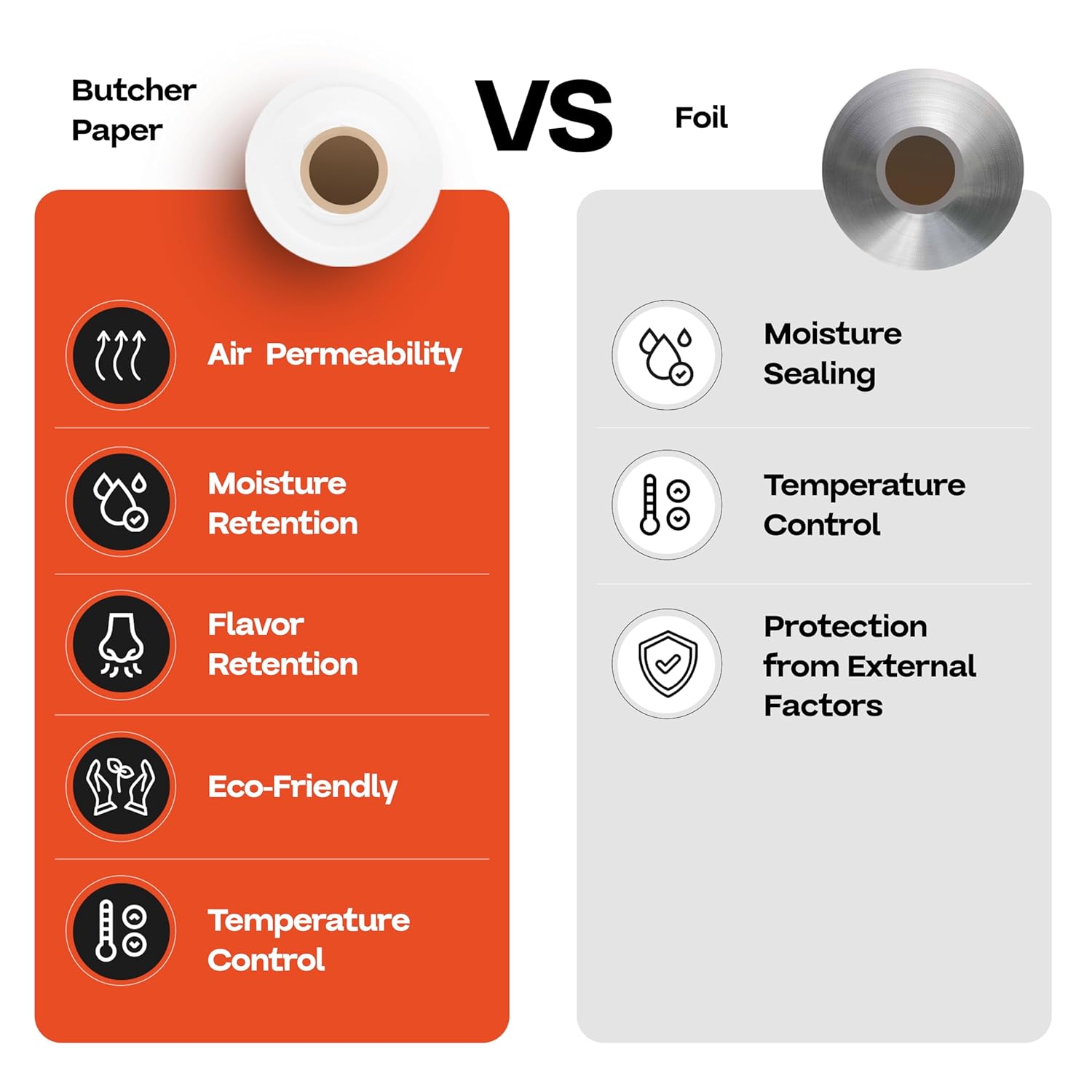 - OUTPERFORMS FOIL: Unlike foil, our butchers paper is breathable, preventing meat from drying out and enhancing its flavor. It promotes even cooking and is ideal for grilling and smoking, offering a natural, effective alternative for great results