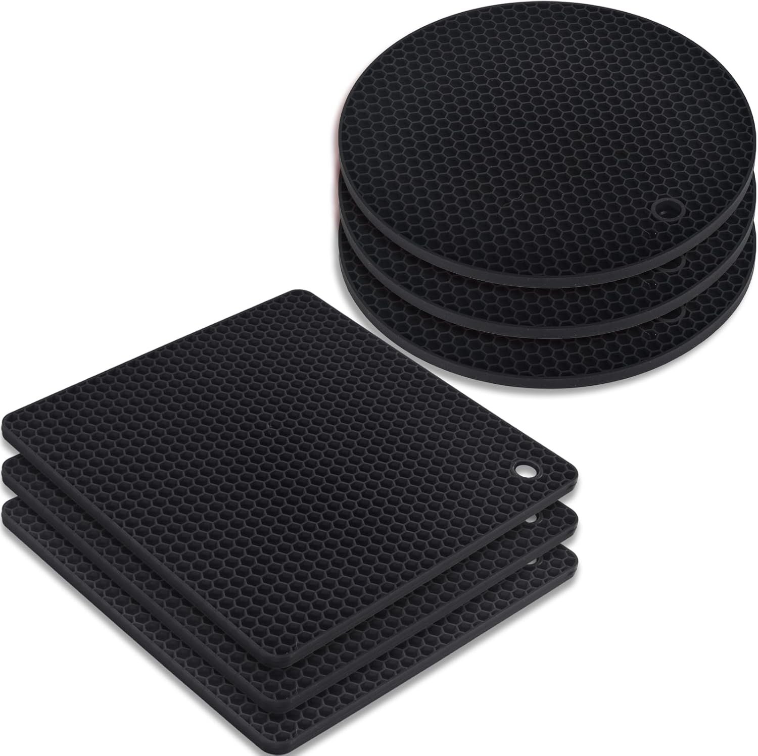 homEdge Silicone Square Trivets Mat, 6 Packs Multipurpose Non Slip Heat Resistant Pot Holder-Black