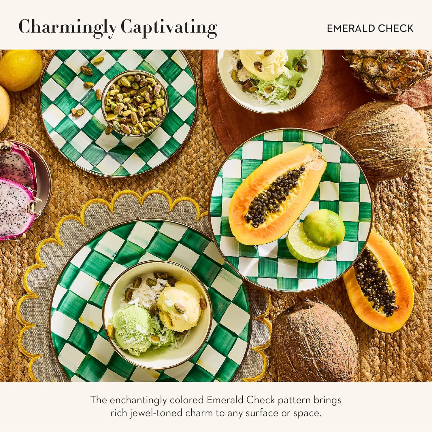 MACKENZIE-CHILDS Enamel Everyday Bowl, Serving Bowl for Entertaining, Extra Small, Green-and-White Emerald Check