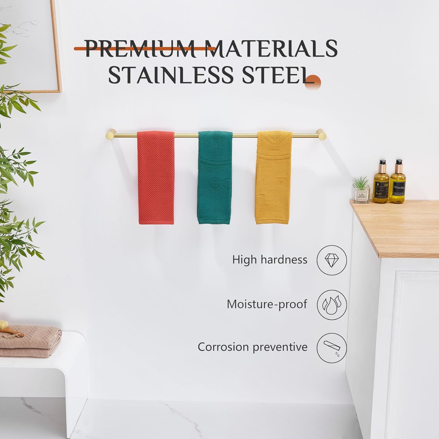 KOKOSIRI Towel Holder Gold for Bathroom Hanger 36-Inch Towel Bar Wall Mounted Bathroom Hardware Lavatory Accessories Stainless Steel, B4007BG-L36