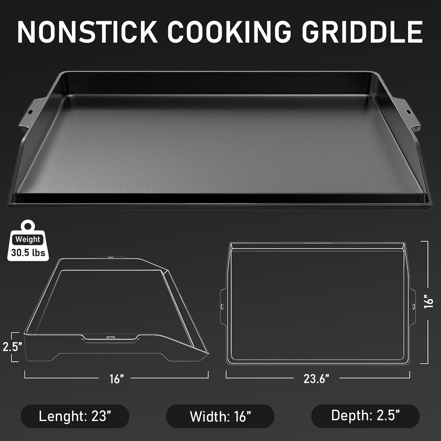 - š„Dimensions & Compatibility: Upgrade your grilling experience with our 23" L x 16" W x 2.6" H Enameled Cast Iron Griddle, fit virtually any gas grill, charcoal grill and 4 burner range oven. this universal griddle is perfect for camping, tailgating, family gatherings, backyard BBQs and home kitchens.
