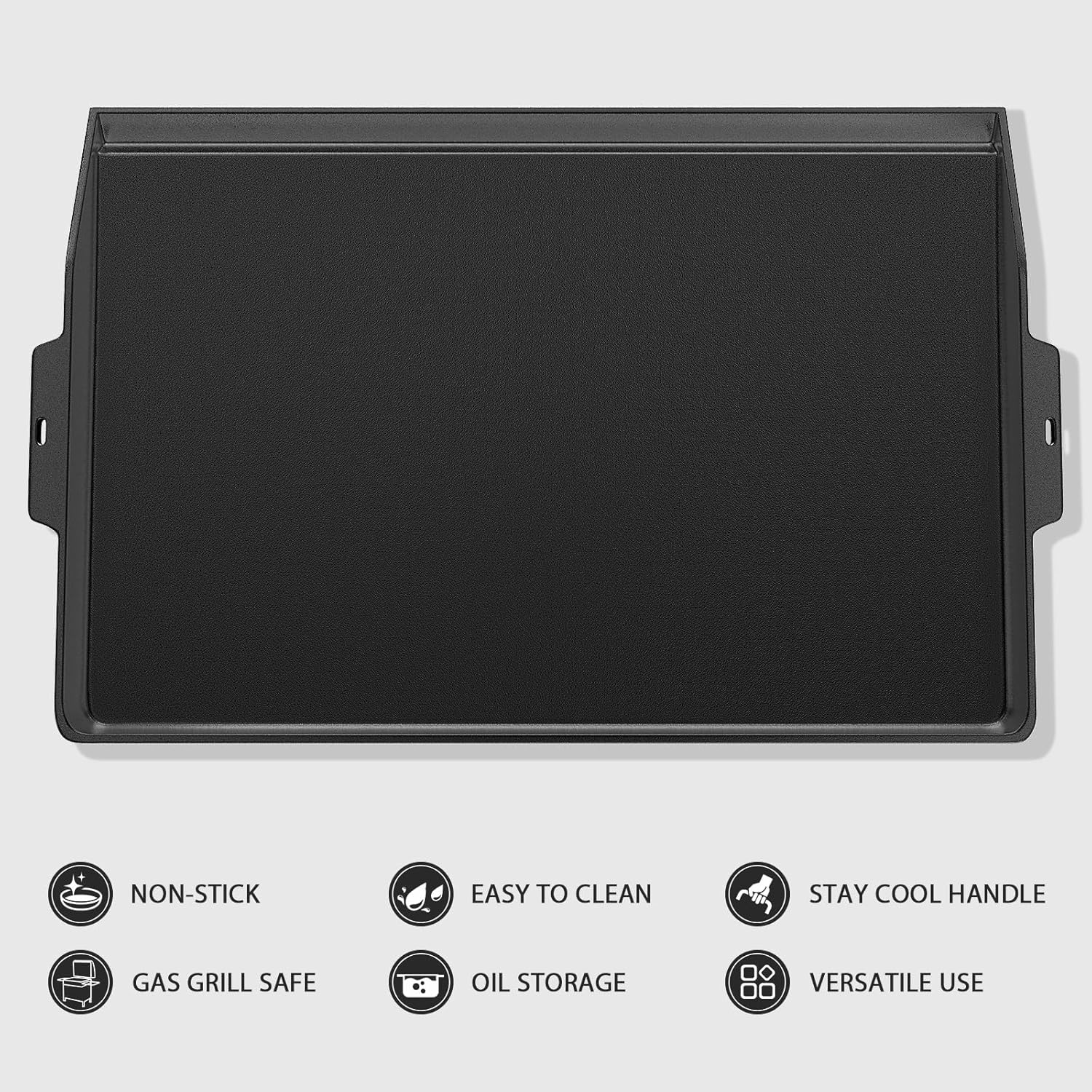 Utheer 23" x 16" Cast Iron Griddle for Gas Grill and Stove Top, Universal Flat Top Griddle with Pre-Seasoned Nonstick Coating, X-Shaped Reinforced Ridges, Perfect for Healthy Cooking, Parties, Camping