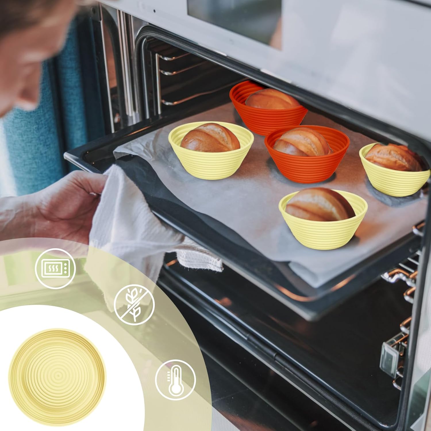 - Elevate Your Baking: Our premium silicone bread proofing baskets outshine traditional rattan ones. The sourdough starter kit is made from top-grade, BPA-free silicone, our bread baskets handle temperatures from -20°F to 440°F (-30°C to 226.15°C), ideal for fridge proofing and direct oven use. Safe, durable, and versatile—transform your baking experience today
