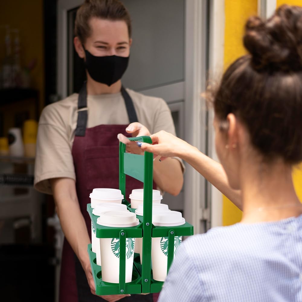 Reusable Drink Carrier with Handle for Doordash, Grubhub, Portable Cup/Coffee Holder Accessories for Delivery, Foldable Drinks Caddy with Tray, Car Durable Plastic Festive Bottle, Vacation
