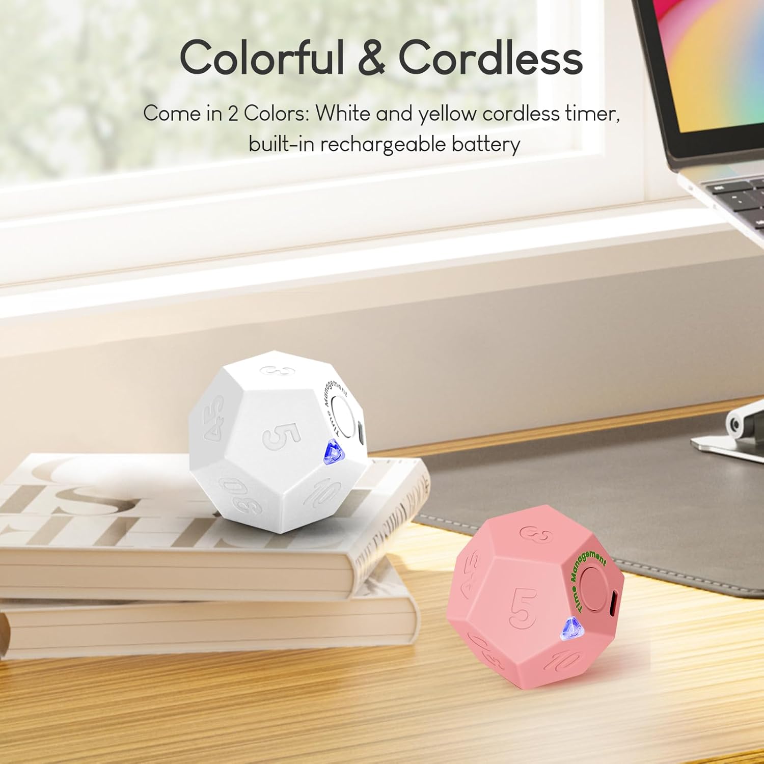 Pomodoro Timer, 11 Preset Time Productivity Timer, Ring/Vibrate Mode Productivity Cube, Type C Rechargeable Kitchen Cooking Timer for Cooking, Learning, Exercise and Beauty-Pink