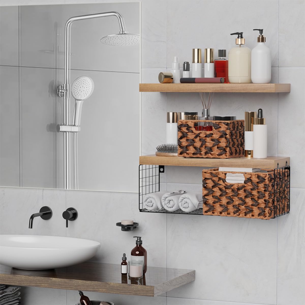 - Multiple-use Woven Basket: These storage baskets are ideal for books, magazines, toilet papers, towels, makeups, fruits, snacks storage. Additionally, it can be used in bathrooms, vanities, entryway tables, bookshelves, kitchen counters, or office desks, demonstrating its versatility in numerous situations