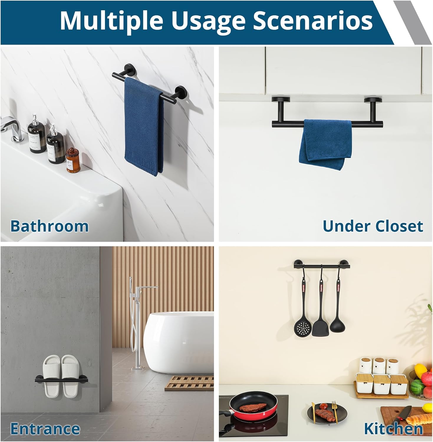 - MODERN DESIGN - The bath towel rack adopts exquisite craftsmanship, invisible screw design, seamlessly connected between the columns, for a high-end style. Only one single towel rod can make your bathroom and kitchen look more elegant and tidy.