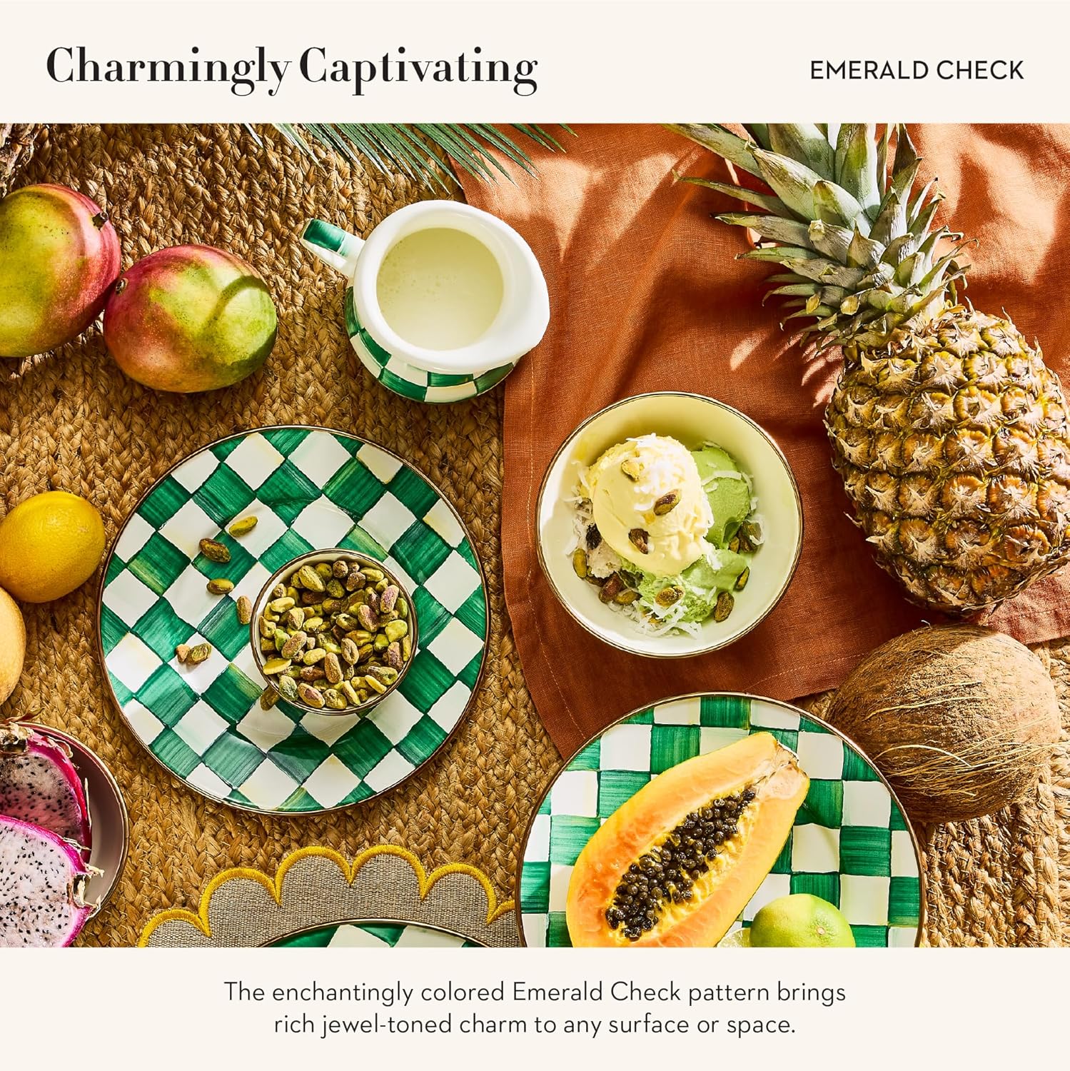 - ELEGANT KITCHEN DECOR: This creamer pitcher is decorated with hand-painted high-contrast checks in our enchanting green-and-white Emerald Check pattern so you can store your café condiments in style. It has a small pitcher pour spout for easy serving.