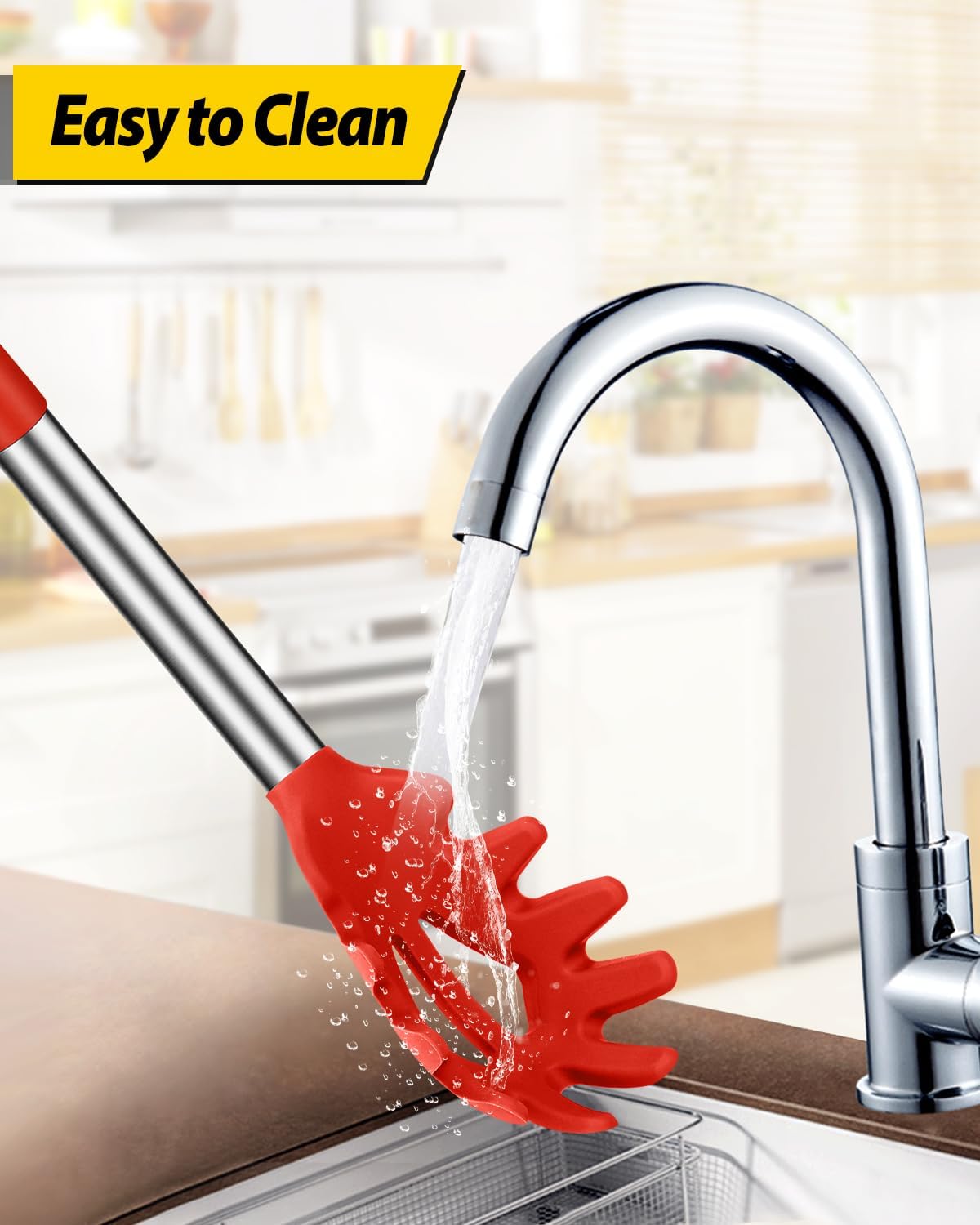 Silicone Pasta Fork and Ladle Spoon Set, Large Non Stick Kitchen Utensils for Cooking,Stirring,Serving Spaghetti, Soup, Sauce (RED)
