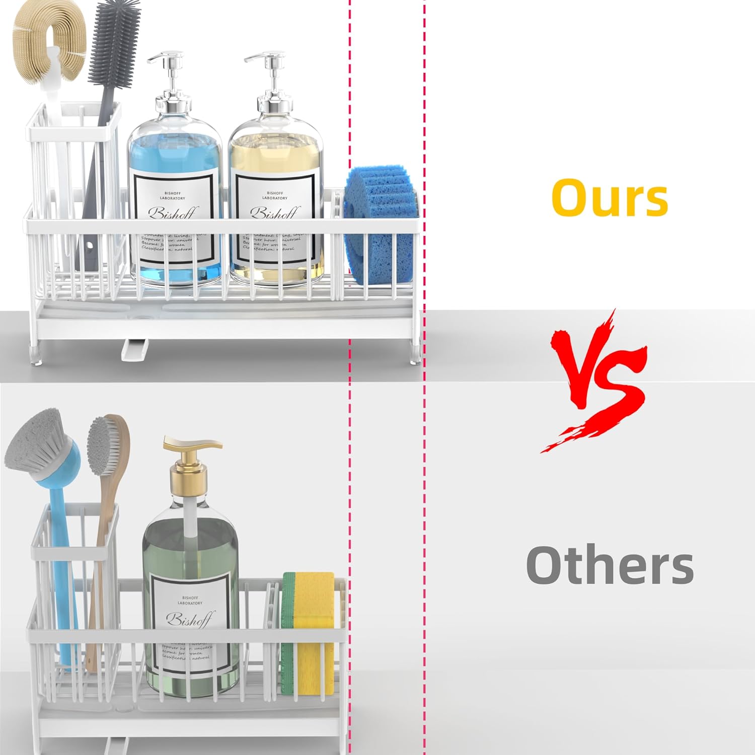 - 【BRUSH STORAGE RACK】The higher brush storage rack allows your brushes to be better stored without falling. The kitchen sink caddy can be used after receiving it, no installation is required, and it is widely used on sink countertops or bathrooms. It is a satisfying gift.