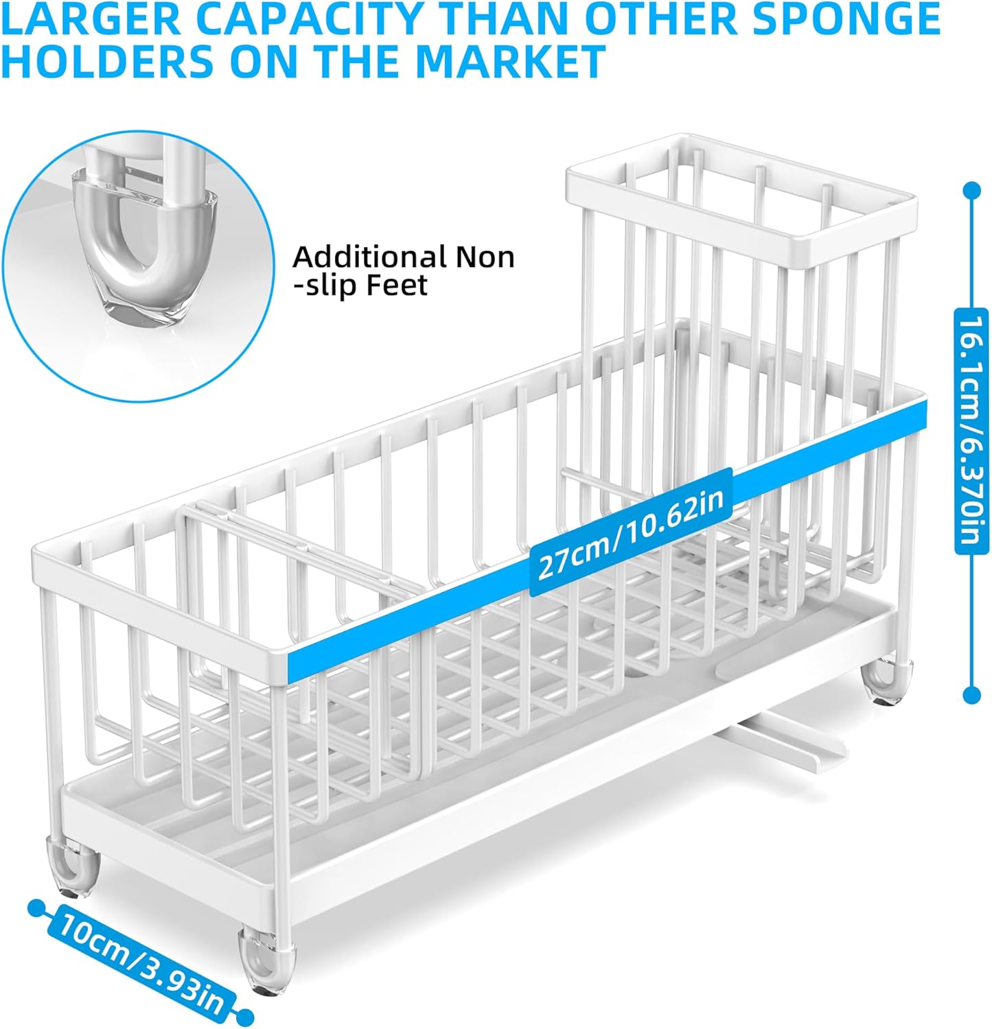 Moforoco Extra Large Kitchen Sink Caddy, Rustproof Sponge Holder for Kitchen Sink with High Brush Holder, Stainless Steel White Kitchen Caddy Sink Countertop Organizer, Sponge Caddy for Kitchen Sink