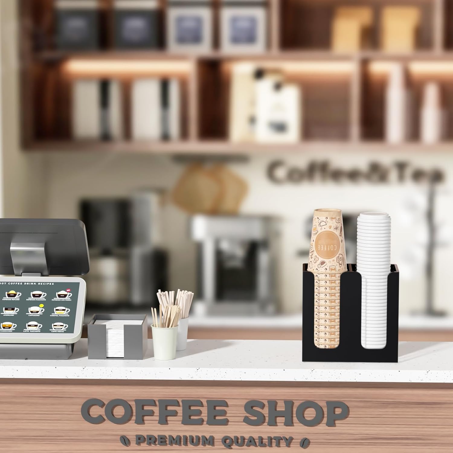 - STRONG AND STURDY: space-saving acrylic coffee lid holder is easy to use, convenient for grabbing on-the-go cups or lids, holding disposable drinking cups, disposable coffee cups, lids, and straws, making hot coffee in the morning, makes your life simpler by providing a place to store your coffee cups neatly and orderly without mess, with wide openings on each compartment, cup storage rack allows you to take out or refill the disposable cups in an easier way