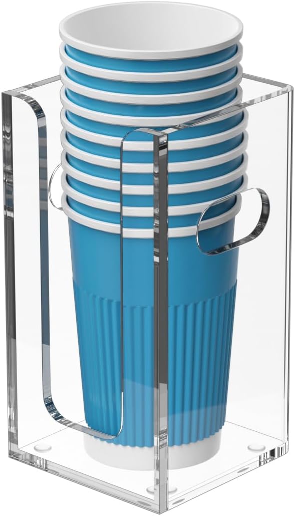 - MODERN: well made and durable, with a glossy surface, this functional acrylic coffee bar organizer features smooth rounded edges and polished surfaces, it complements various decor styles and adds a touch of elegance to your coffee maker area in the kitchen, disposable coffee cup holder for countertop can be used in coffee bar, office, breakroom, restaurant, church, RV, makes a nice hostess gifts for christmas party or family gatherings