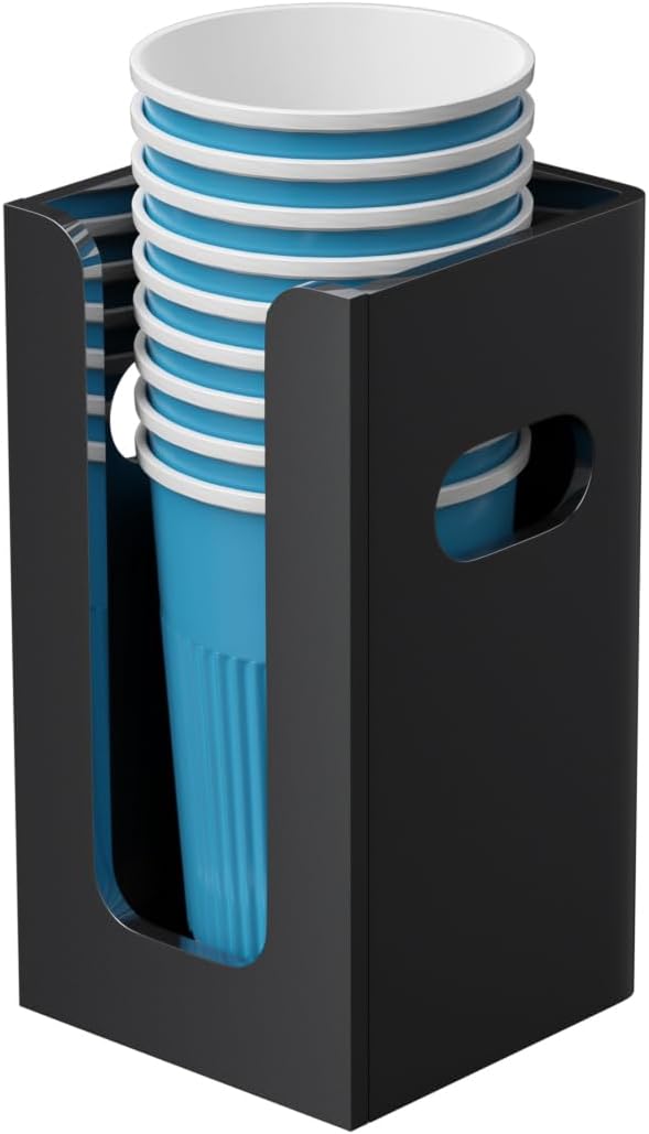 - MODERN: well made and durable, with a glossy surface, this functional acrylic coffee bar organizer features smooth rounded edges and polished surfaces, it complements various decor styles and adds a touch of elegance to your coffee maker area in the kitchen, disposable coffee cup holder for countertop can be used in coffee bar, office, breakroom, restaurant, church, RV, makes a nice hostess gifts for christmas party or family gatherings