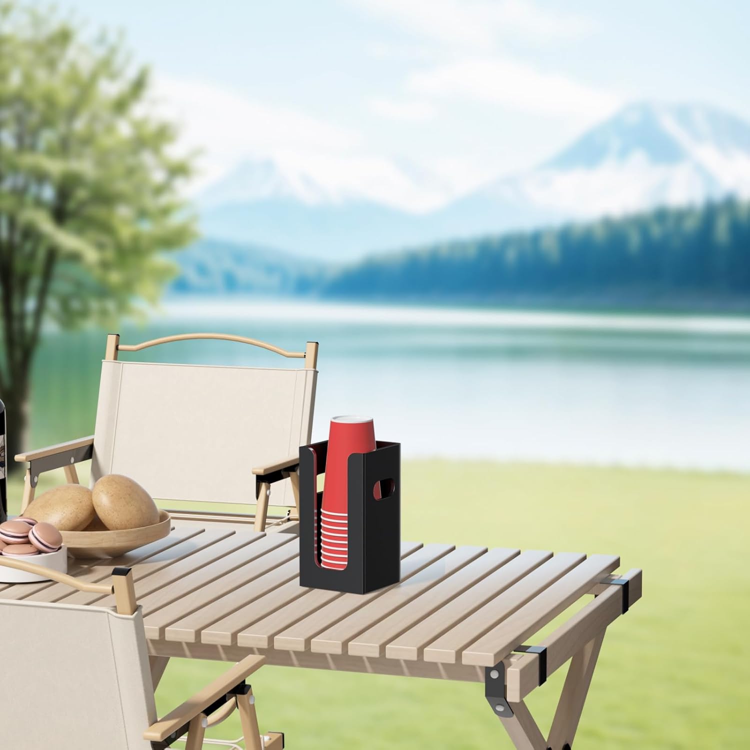 WINFFOR Disposable Cup Organizer Dispenser - Black Acrylic Cup and Lid Holder with Handles Plastic Cup Dispenser Countertop Paper Coffee Cup Holder for Coffee Bar House Party Essentials