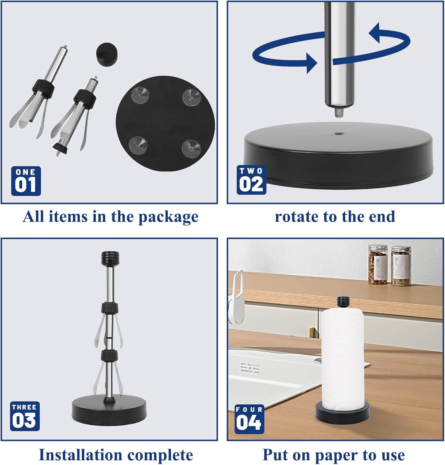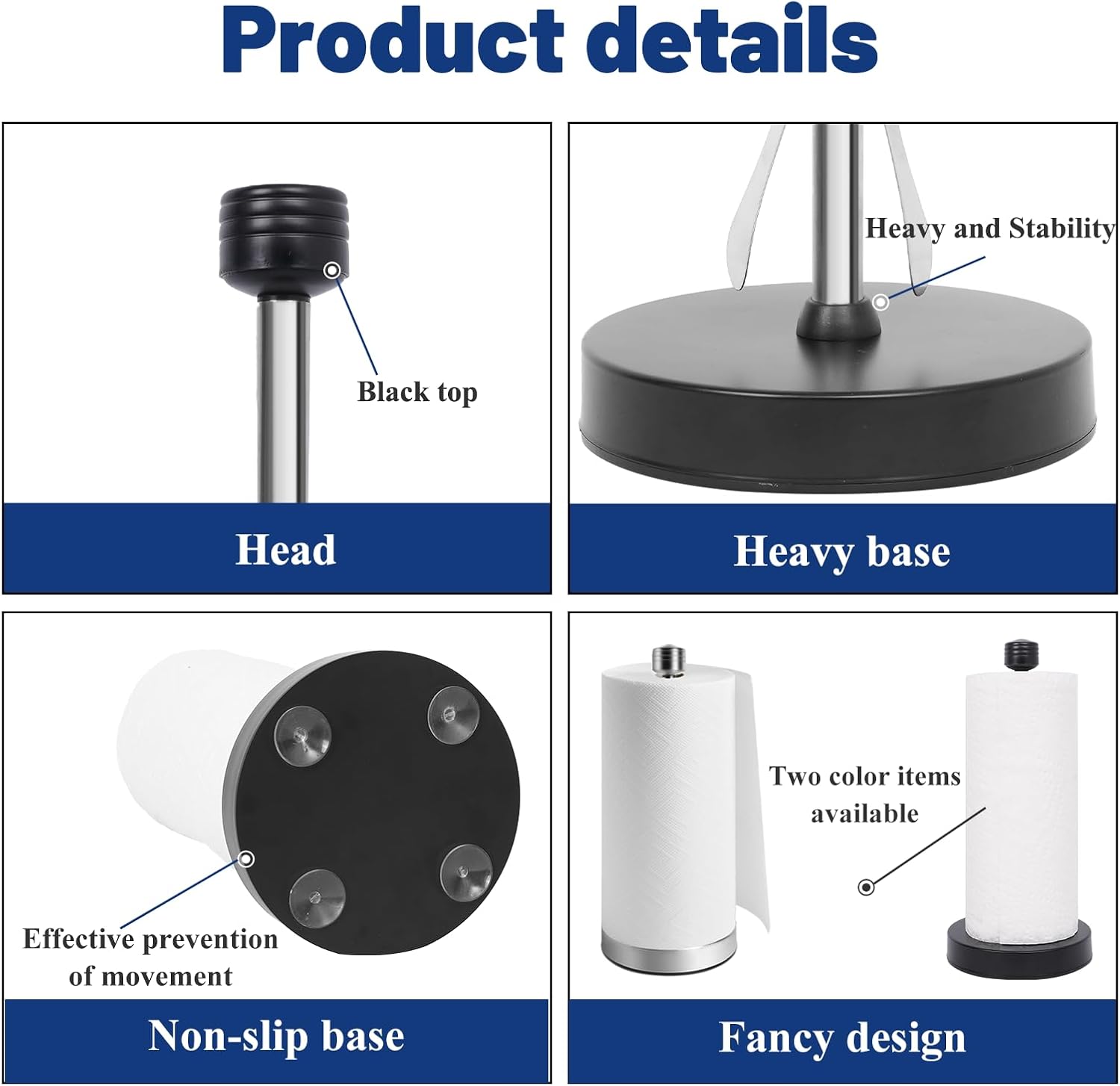 - Heavy base/Stability and Scratch Protection: This suction cup paper towel holder features a weighted base with four powerful anti-slip suction cups, ensuring unwavering stability and zero slipping on any level surface. This design not only protects your countertops from scratches but also guarantees that your countertop paper towel holder remain steady when tearing off sheets