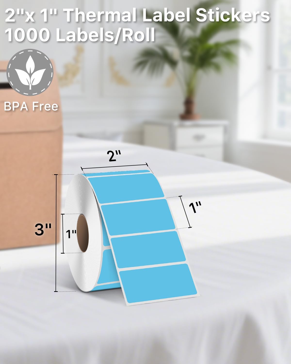 - Specifications: iEager 2" x 1" blue thermal label with perforation line, 1000 labels/roll. Paper tube inner diameter 1". No ink, toner or ribbons needed
