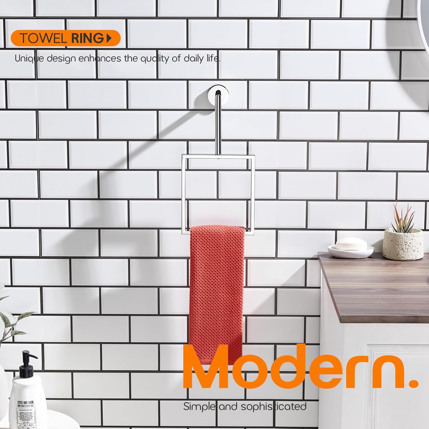 - ● MODERN DESIGN ● The bath towel rings combine elegant square, sleek round, and unique rectangle elements to bring a modern aesthetic to your bathroom, toilet, kitchen, washroom, or garage. You can choose from our series of bathroom hardware for a complete, coordinated look of your house
