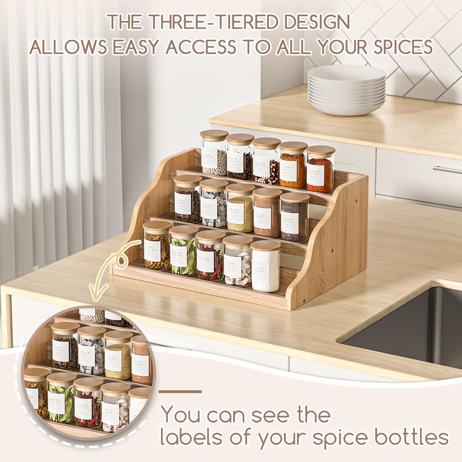 Tiered Spice Rack Organizer for Cabinet, Wooden Spice Rack for Countertop, Spice Shelf organizer Spice Organization for Cabinet