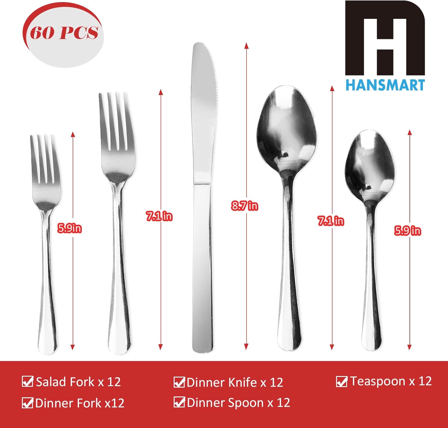 60 PCS Windsor Silverware Set - Stainless Steel Silverware Set for 12 Kitchen Flatware Set Cutlery Set For Home Restaurant Hotel, Kitchen Dishwasher Safe Utensils Set Weddings, Parties, Gifts
