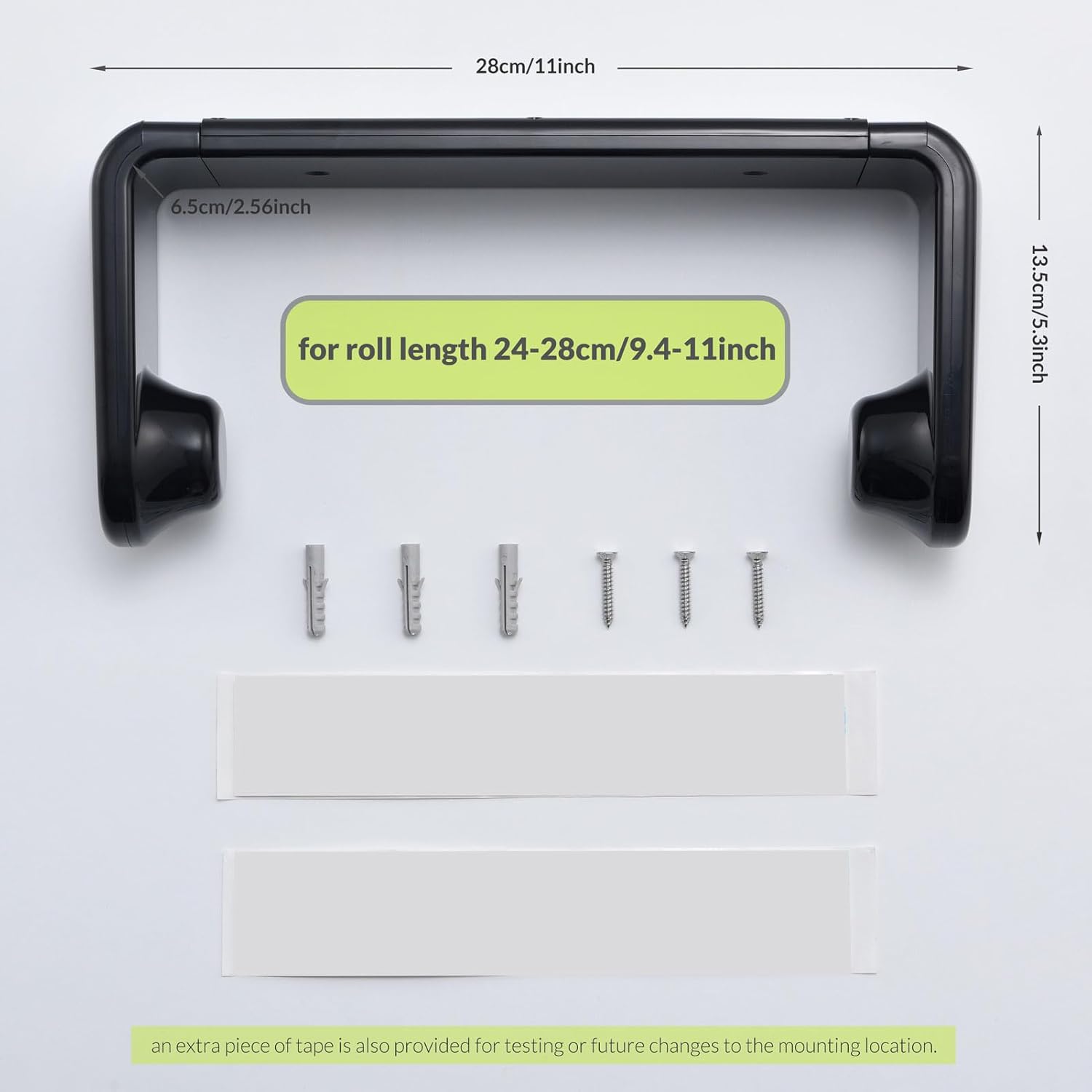 - TIPS FOR ADHESIVE TAPES : The adhesive tape (2pcs included in the package, the extra one is for your testing) installation method is suitable for smooth and flat surfaces such as tiles, wood, marble, glass, etc. Before installation, please ensure the surface is clean and dry. Choose an appropriate location and firmly press for 15-30 seconds. Allow 4-5 hours of waiting time before use.