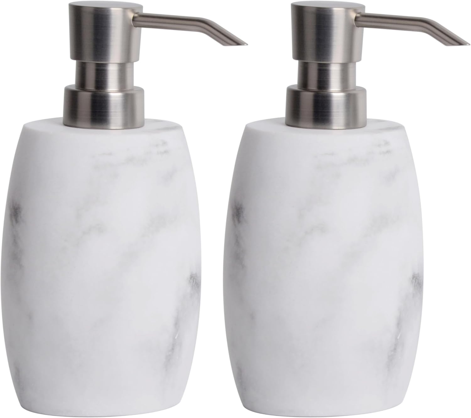 Resin Soap Dispenser Set 2, Refillable Hand Soap Dispenser with White Marble Look and Metallic Pump, Kitchen, Bathroom, Waterproof Labels (12 Oz)