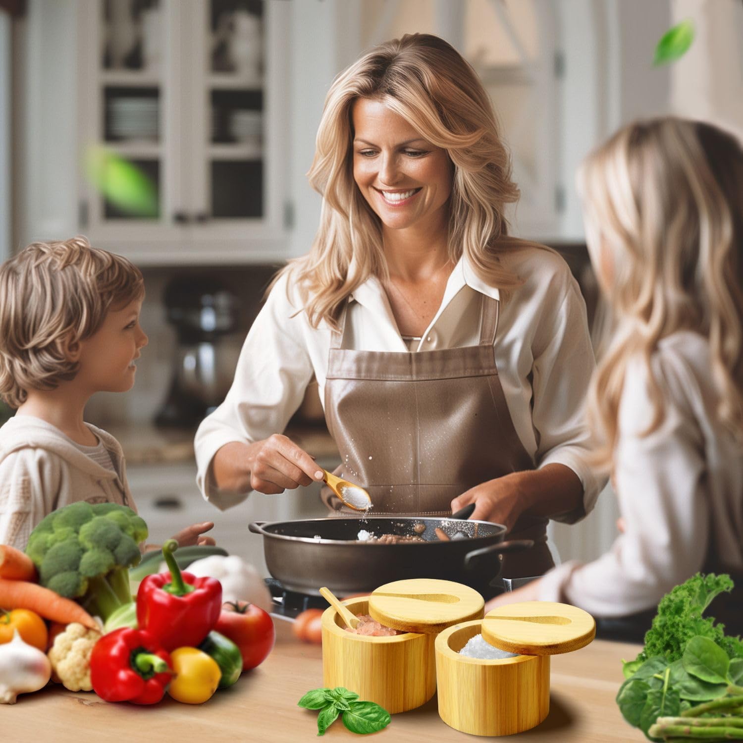 - Versatile Storage Solution: Our bamboo salt container with spoon is perfect for table salt, gourmet salt, herbs, spices, pepper, sea salt, sugar, bath salts, or any other seasonings you desire
