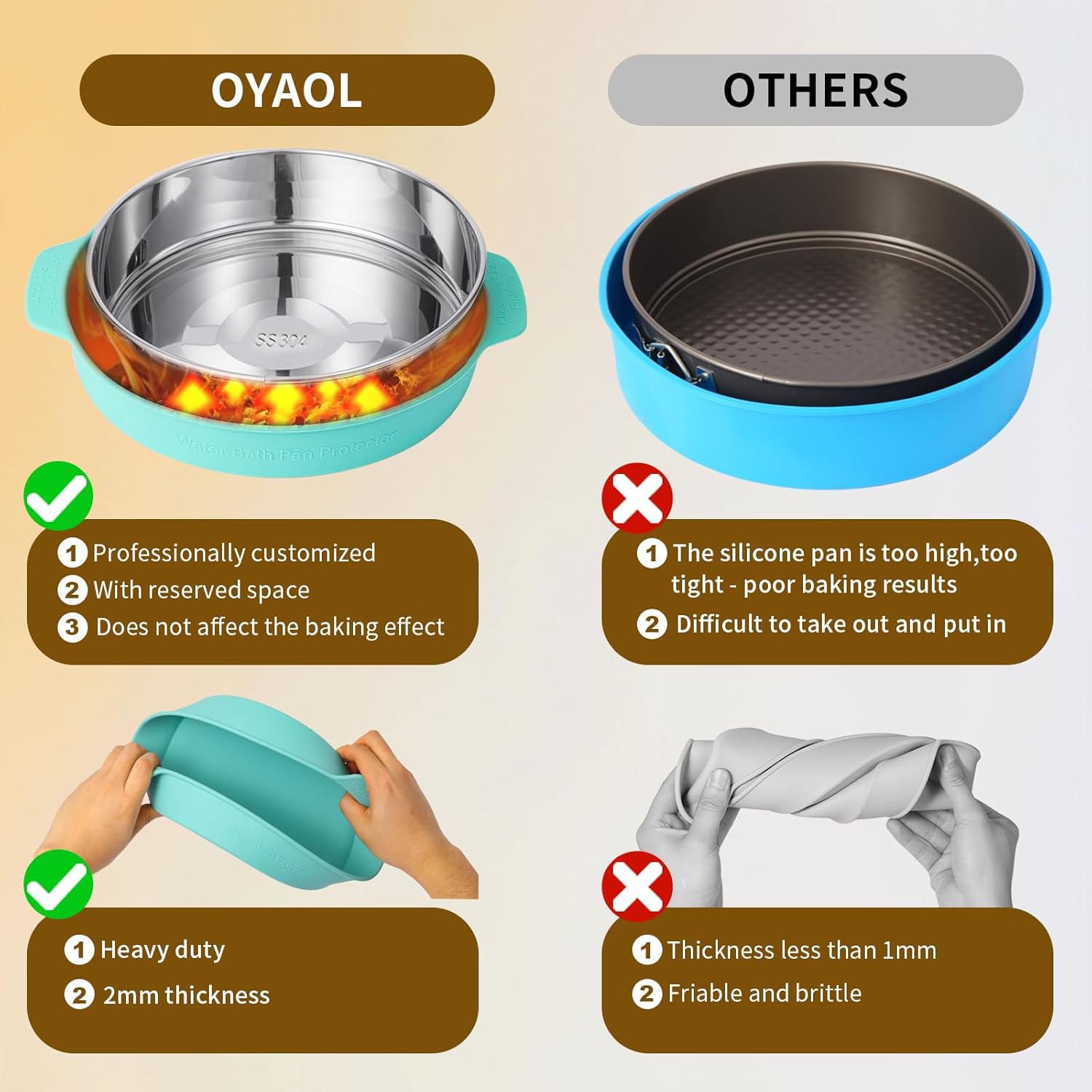 - THICKENED SILICONE SPRING FORM PAN PROTECTOR: OYAOL 10 Inch Versatile Silicone Water Bath Protector Not Only Serves as a Reliable Water Trap But Also Doubles as a Convenient Tool for Cake Baking. Reusable and Easy to Clean