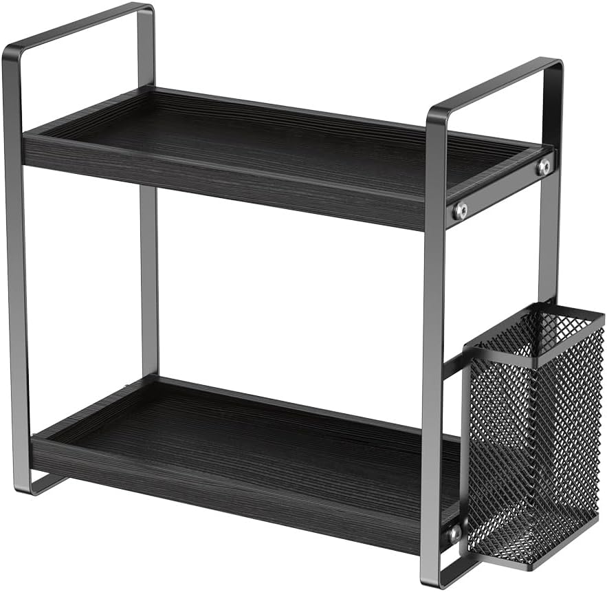 - 【Powerful and Robust Material】The kitchen countertop organizer is made of high-quality particleboard that are durable and emit no strange odors. The particleboard shelves are waterproof and smooth to the touch, while the metal brackets are sturdy and rust-resistant, ensuring a long-lasting service life.