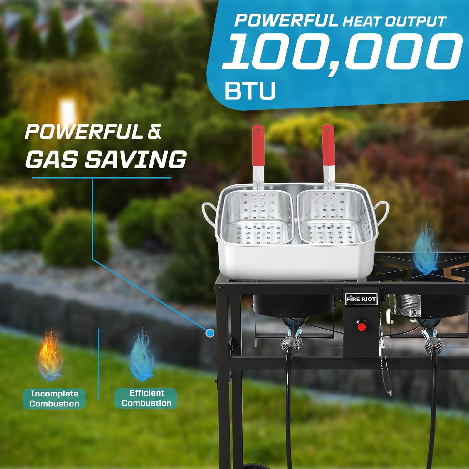 - LIGHTWEIGHT & DURABLE CONSTRUCTION: Crafted from high-quality and heavy-duty steel, this double burner ensures fast, even cooking with superior heat distribution. The sturdy frame, with a max weight capacity of 100 lbs, is coated with high-temperature paint for enhanced durability and easy cleanup.
