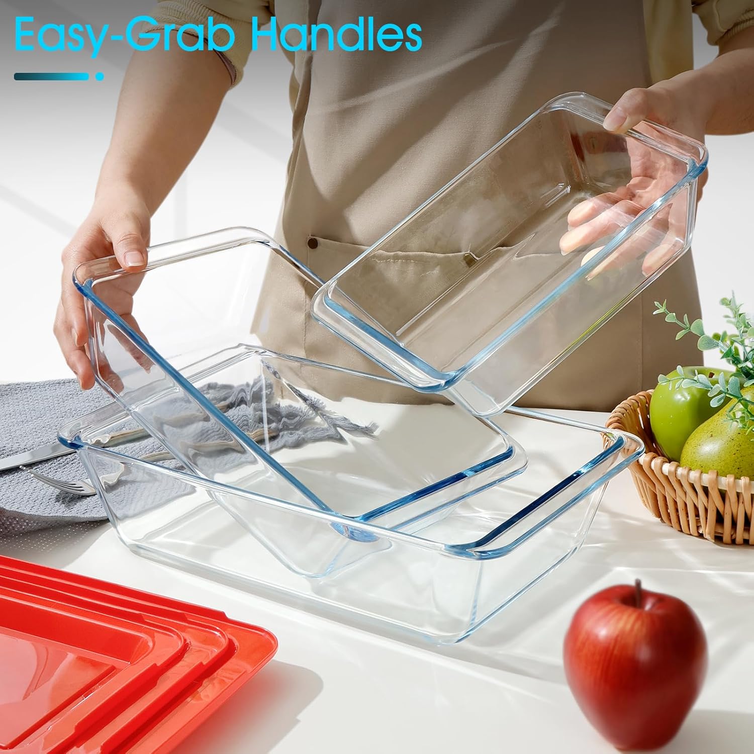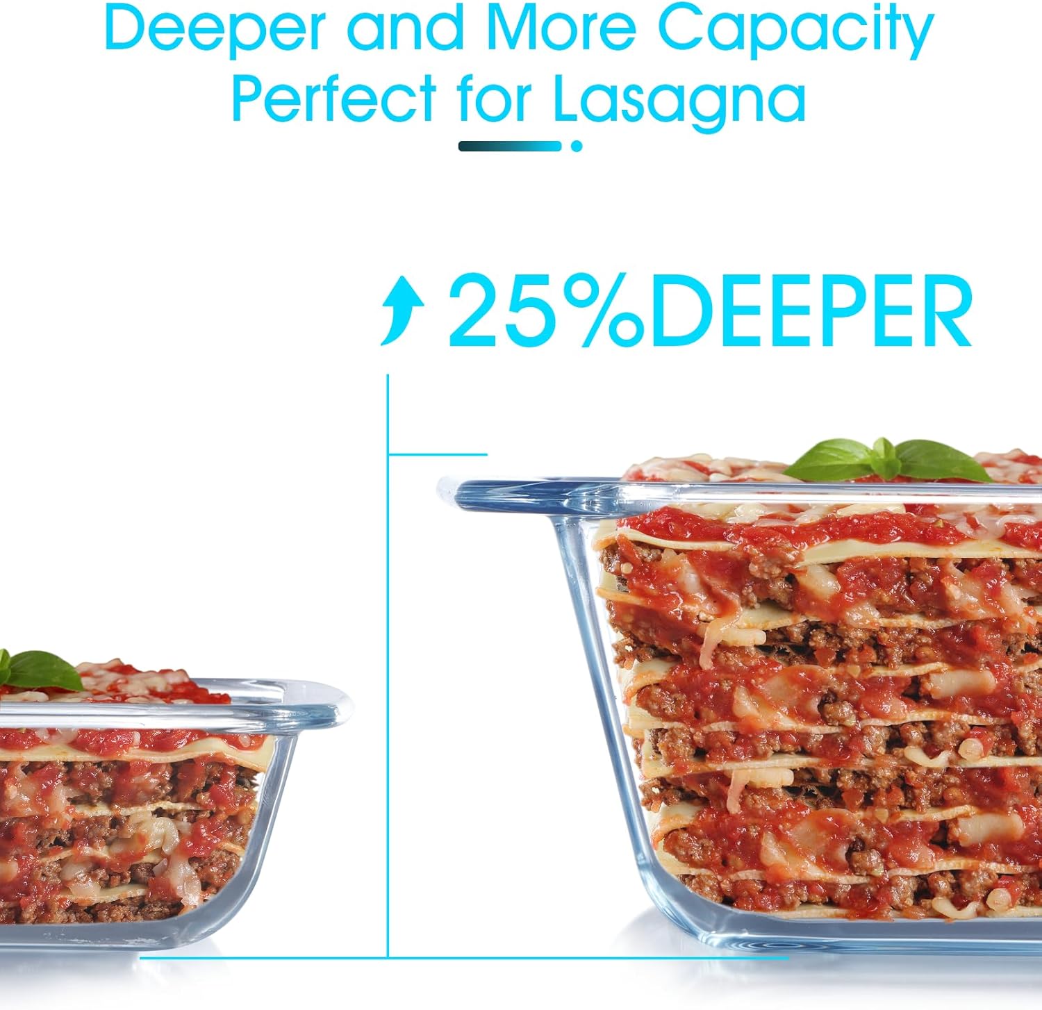 NUTRIUPS Deep Glass Baking Dish with Lids, 1.5+2.4+3.7Qt 3-Pack Deep Lasagne Dish for Oven, Rectangular Glass Bakeware